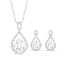Dazzle in our Infinity Necklace Set featuring a 6 MM Round Cut Moissanite Solitaire in a unique Infinity style Pendant and 4 MM Solitaires in Infinity Earrings, this classic Infinity Earrings and Necklace Set will add grace and elegance to your look.