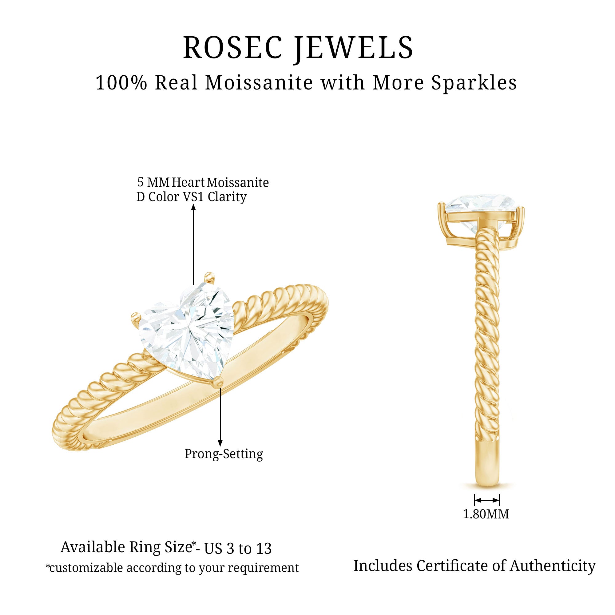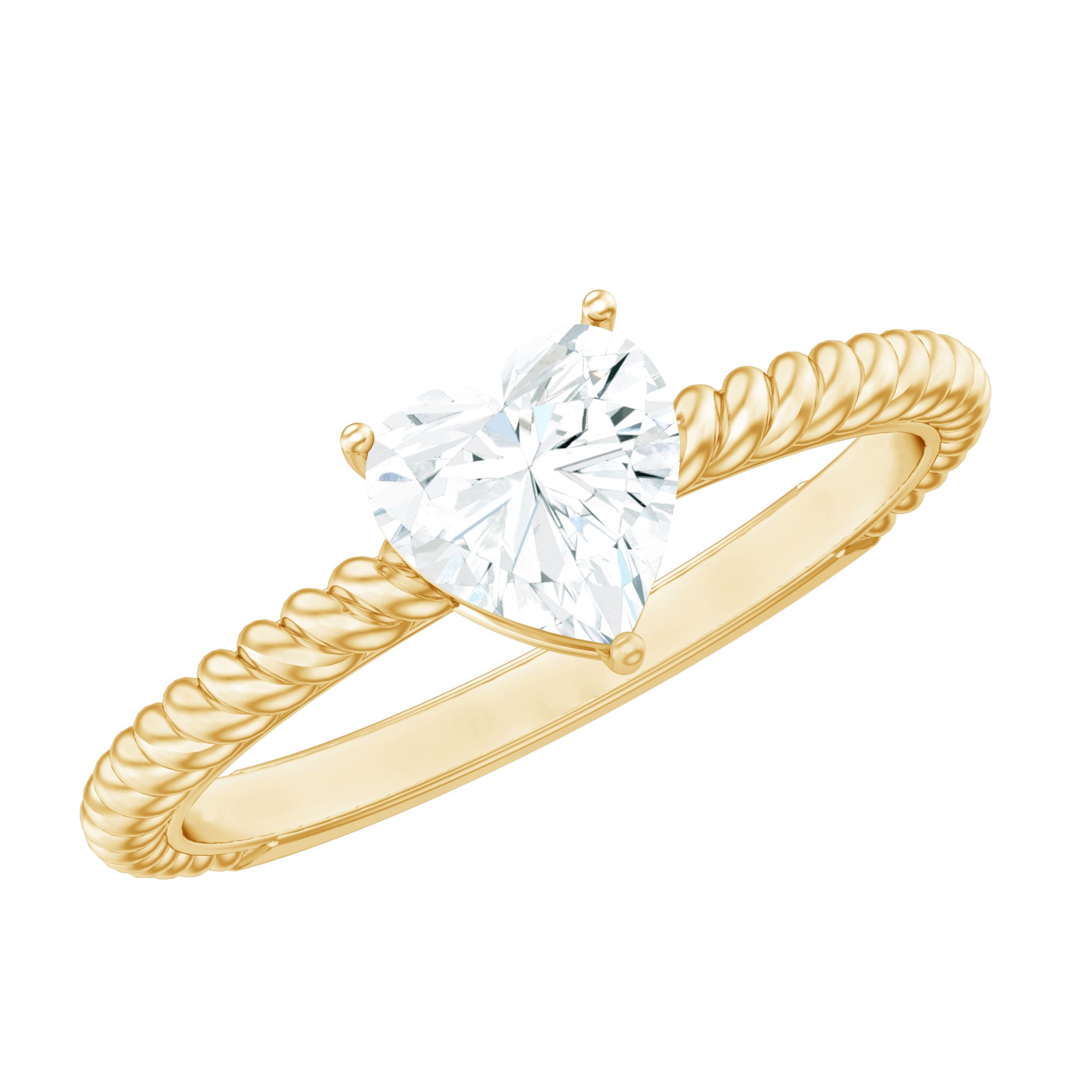 Mark a meaningful moment with this beautifully romantic Heart Shaped Moissanite Ring, a symbol of love, loyalty, and connection. Thoughtfully designed to express your commitment, this Solitaire Promise Ring features a captivating 5 MM heart shaped moissanite at its center, radiating brilliance and emotion with every glance. Its unique shape speaks directly to the heart, making this Moissanite Solitaire Ring a perfect choice for promises that truly matter. The band showcases a twisted rope design, elegant and symbolic, representing two lives woven together. This artistic detail adds modern texture while preserving a timeless feel, giving the Moissanite Promise Ring for Her a distinctive charm that sets it apart from the ordinary. Perfect as a gift for a special anniversary, a promise of commitment, or simply to celebrate a love that continues to grow, this Heart Promise Ring is both eye-catching and deeply meaningful. It is a piece designed not just to sparkle, but to speak, to remind someone just how loved and valued they are. Whether worn as a daily reminder or kept as a cherished keepsake, it beautifully reflects the strength, warmth, and purity of your bond.