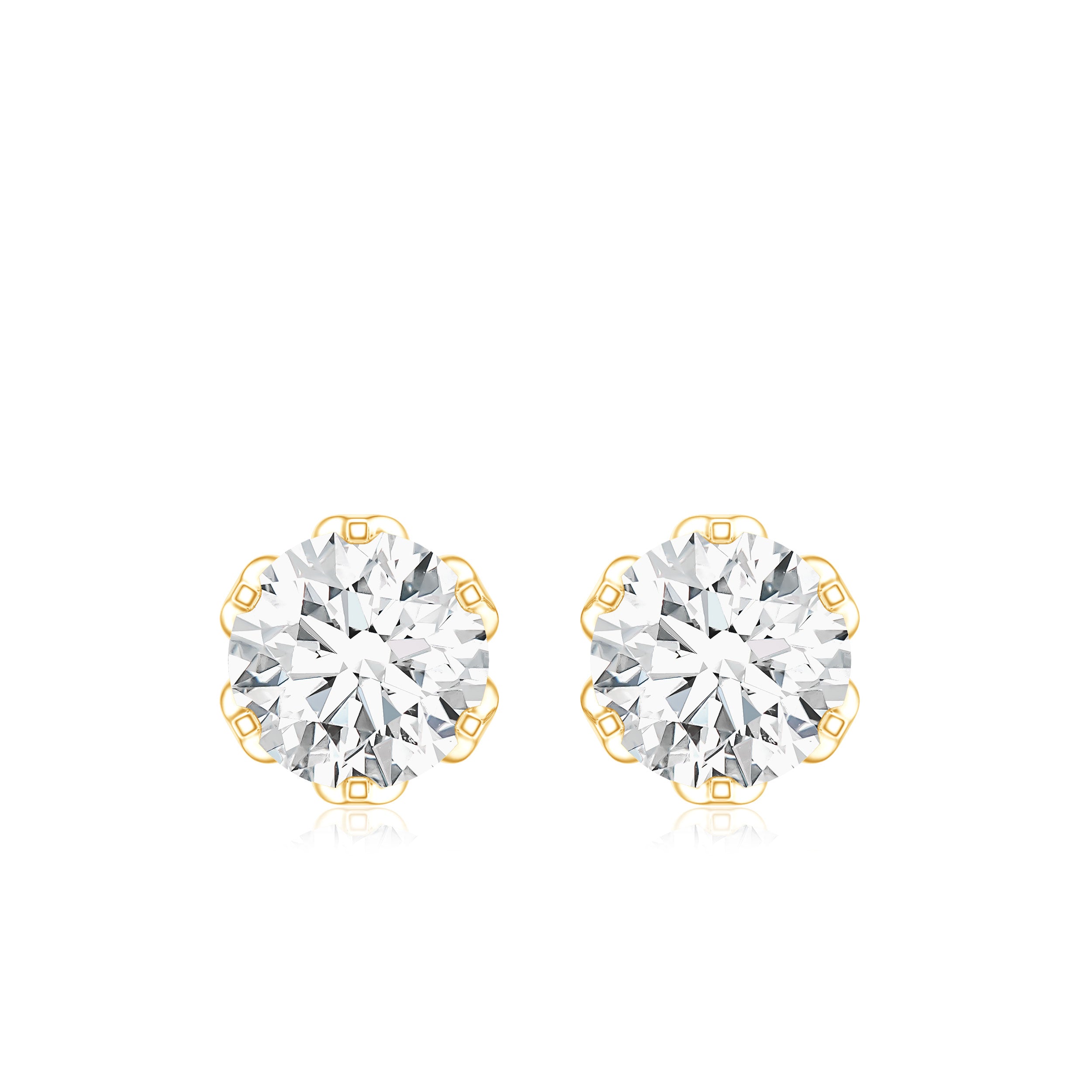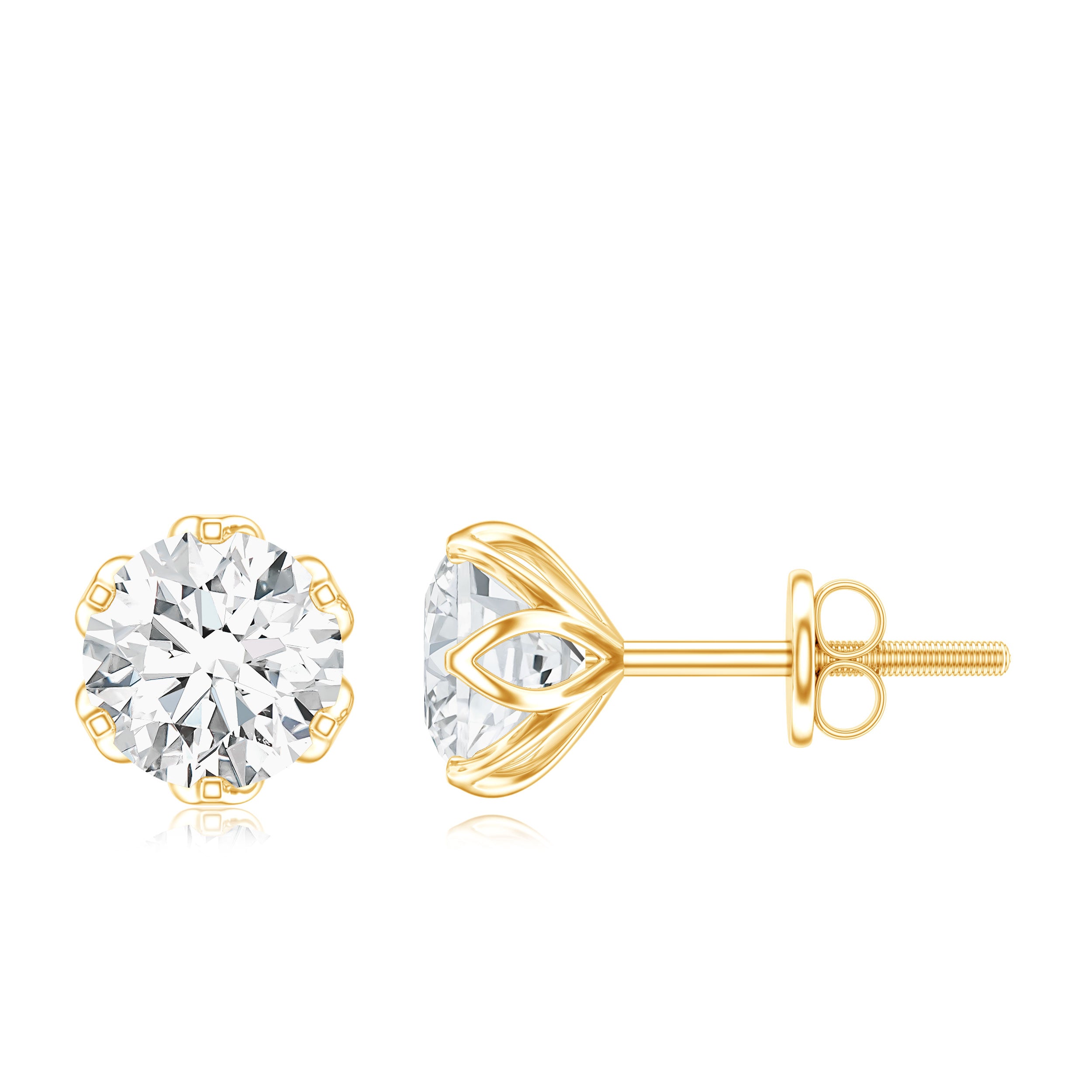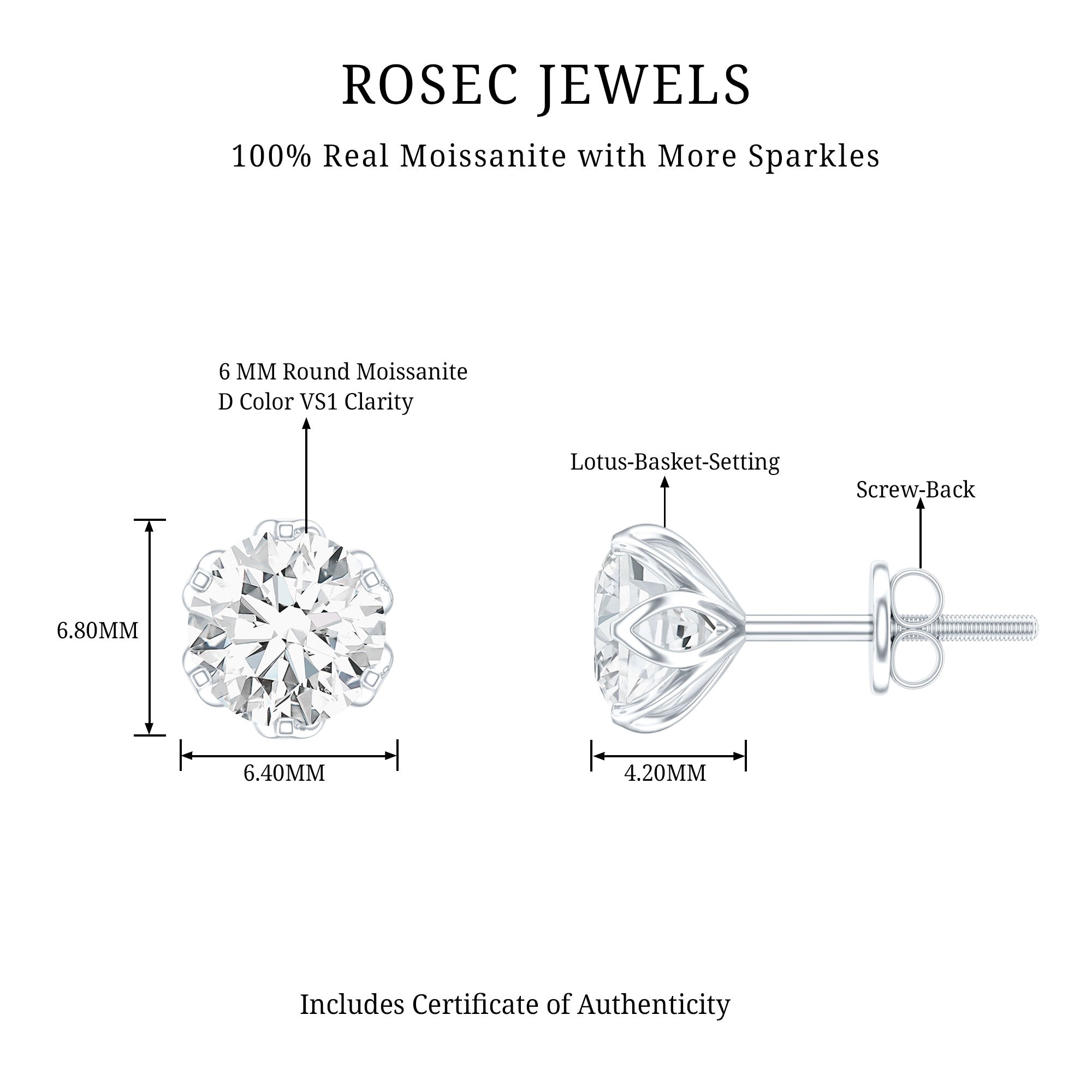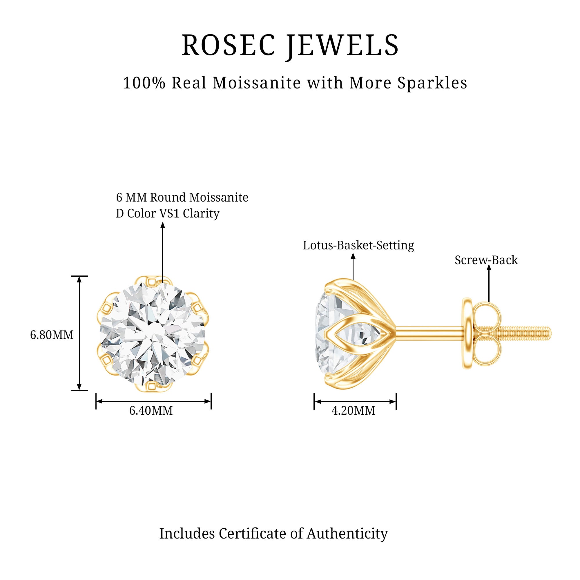 Moissanite Solitaire Stud Earrings in Lotus Basket Setting