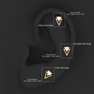 A Moissanite Geometric Tragus Earring is a chic and modern piece of jewelry. This earring features a triangle shape, adorned with Round Cut Moissanite secured in Prong Setting. This Unique Earring is crafted with Real Gold Metal for a shiny and luxurious look, and can be worn on your Helix, Cartilage, Tragus, Conch, or Upper Lobe Piercing.