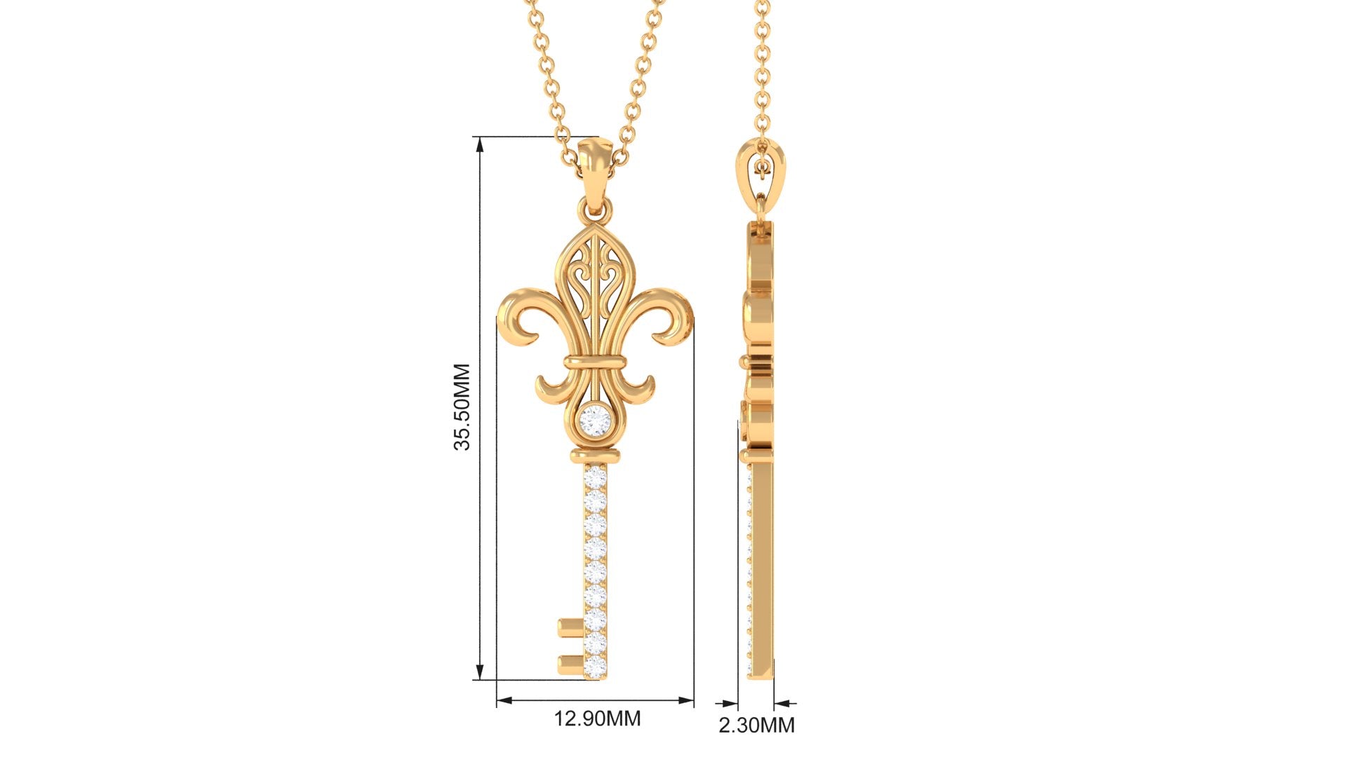 Moissanite Vintage Inspired Key Pendant Necklace