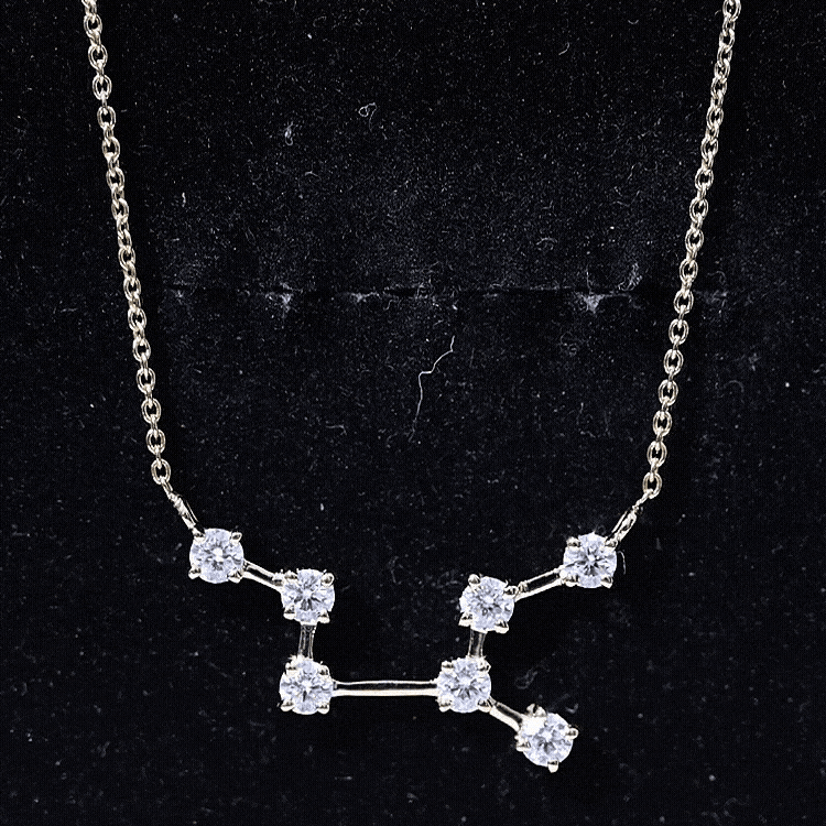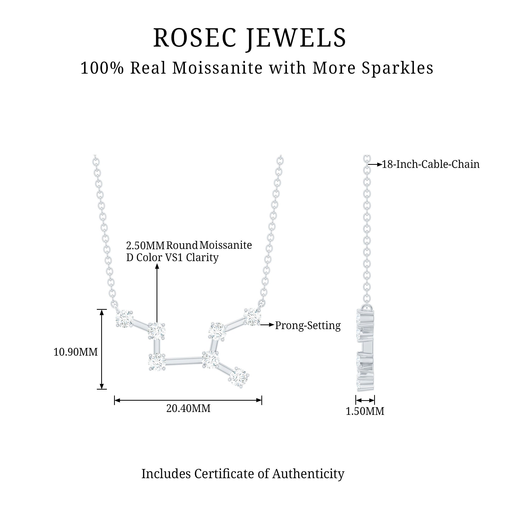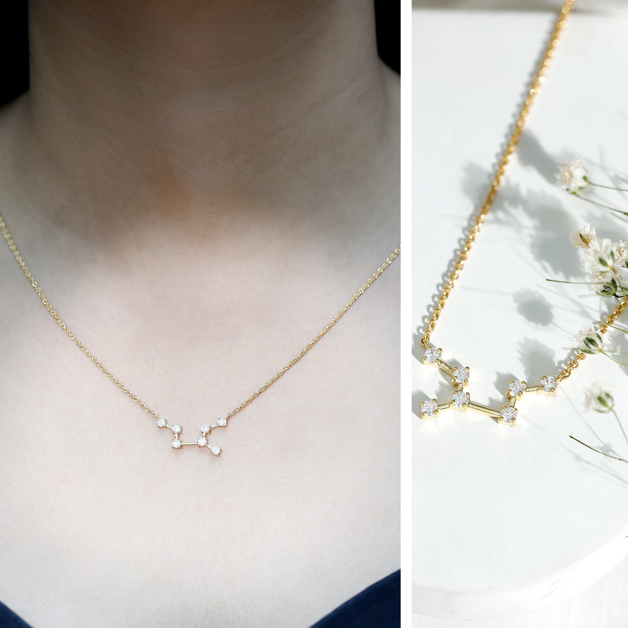 Wear your star sign with pride and add a touch of sparkle to your everyday style with this beautiful Zodiac Constellation Necklace. Designed for those who love meaningful jewelry, this Virgo Zodiac Necklace features round moissanite stones set securely in prong setting, forming a delicate constellation pattern inspired by your zodiac sign. Each moissanite is of D-VS1 quality, giving the Virgo Necklace a bright and eye-catching shine that feels luxurious. Attached to a classic cable chain, the Moissanite Zodiac Necklace sits comfortably on the neck and is perfect for daily wear. Its simple and modern design makes it easy to pair with other necklaces for a layered look, or you can wear it alone as a subtle statement piece. Available in a variety of metal options, you can choose the finish that best matches your personal style. This Virgo Constellation Necklace makes a thoughtful and meaningful gift for anyone who loves astrology or wants to carry a symbol of their personality close to their heart. This beauty comes beautifully packaged in a jewelry box and includes a certificate of authenticity, ensuring high quality moissanite stones.