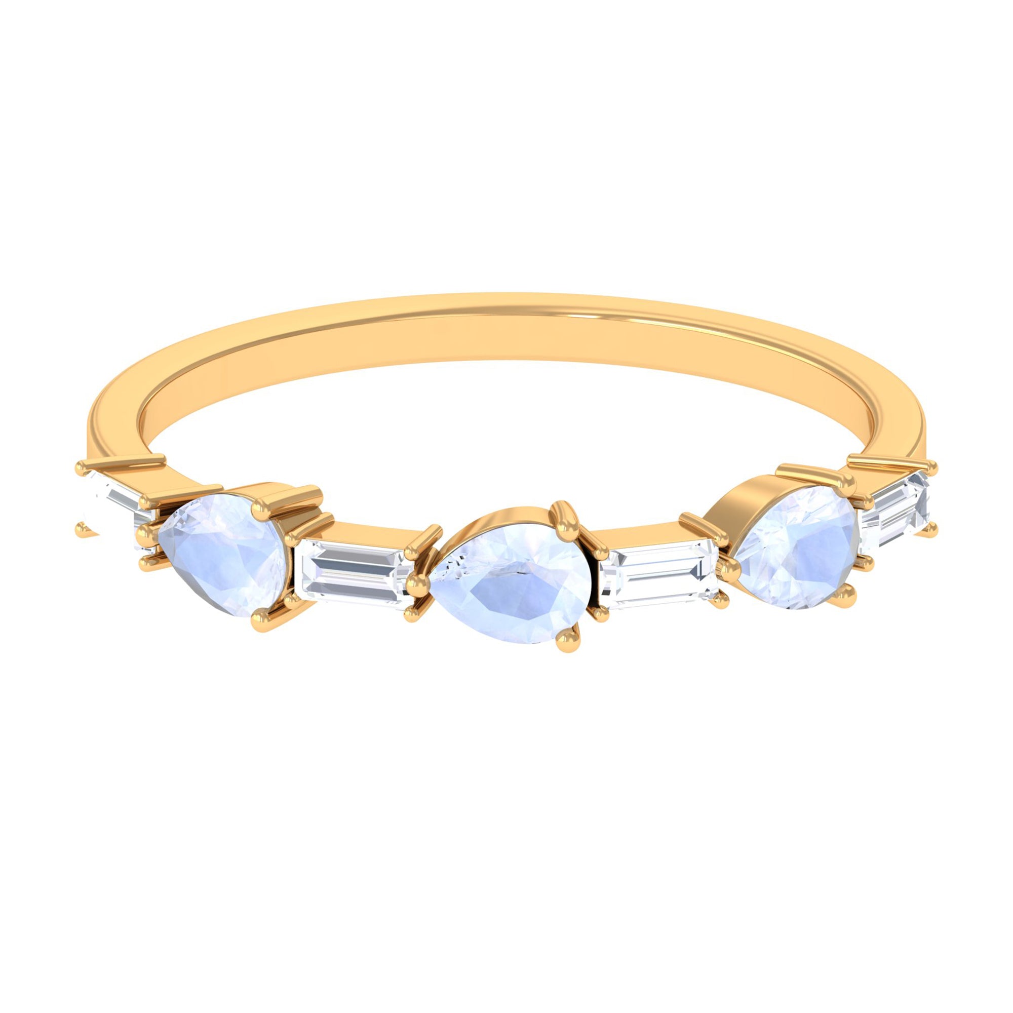 Capture modern sophistication with this Moonstone and Diamond Half Eternity Ring in East West Style, a captivating blend of elegance and heavenly charm.