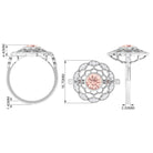 A dazzling bloom of love and light, the Morganite and Diamond Flower Statement Ring is a breathtaking symbol of your forever bond. At its center, a sparkling morganite gemstone radiates a soft, ethereal glow, reminiscent of a rose kissed by morning dew. Around it, a halo of Diamond shimmers like a constellation of stars, creating a truly dazzling display. Like a flower in full bloom, this ring is a celebration of your loves beauty and resilience. Wear this ring as a reminder of your loves eternal bloom.