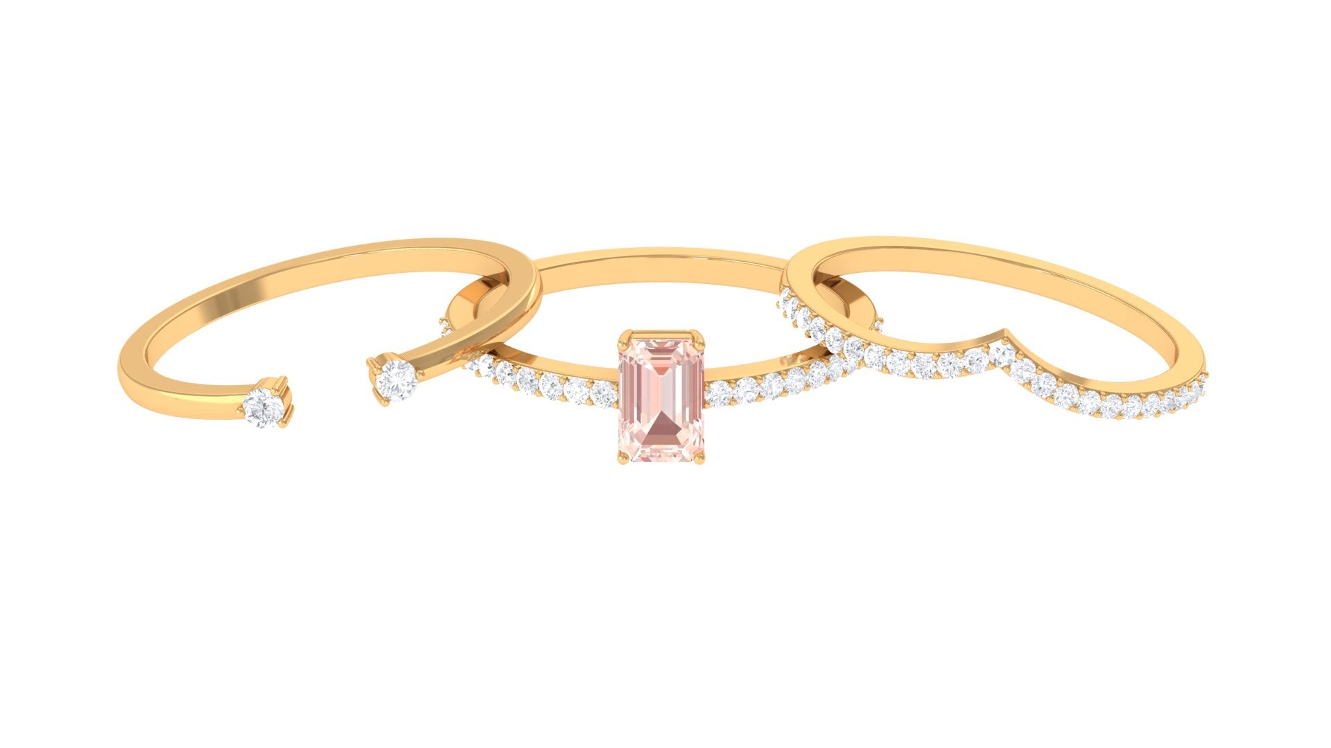 Experience a radiant blend of beauty and brilliance with this Morganite and Diamond Ring Set, a stunning symbol of love and elegance.