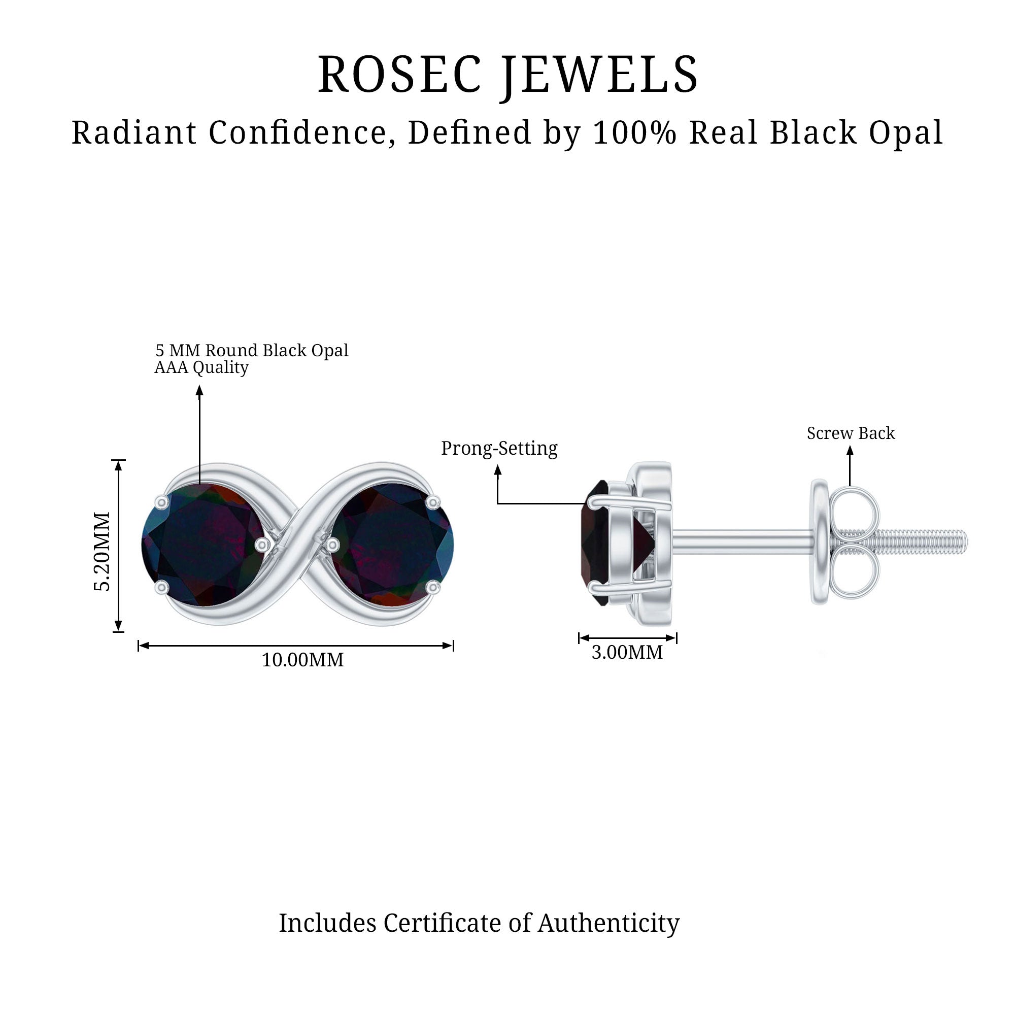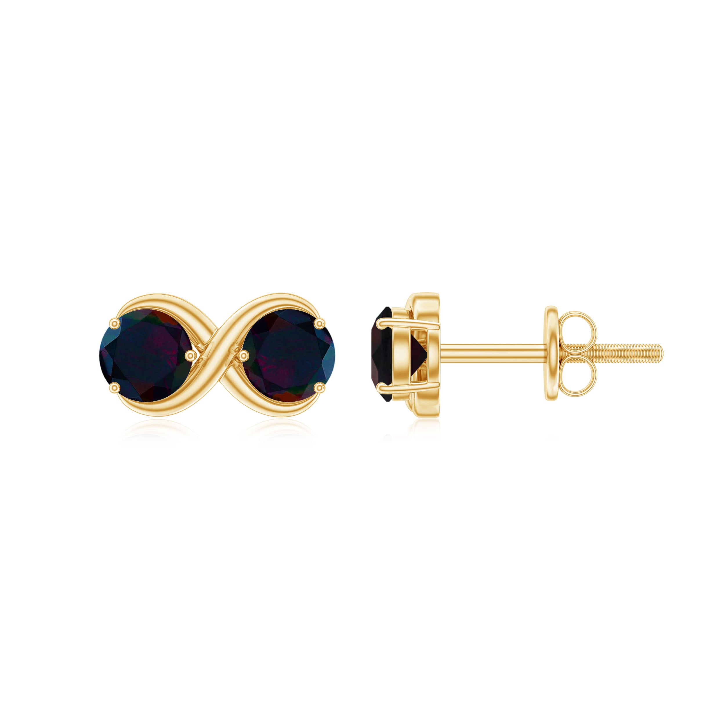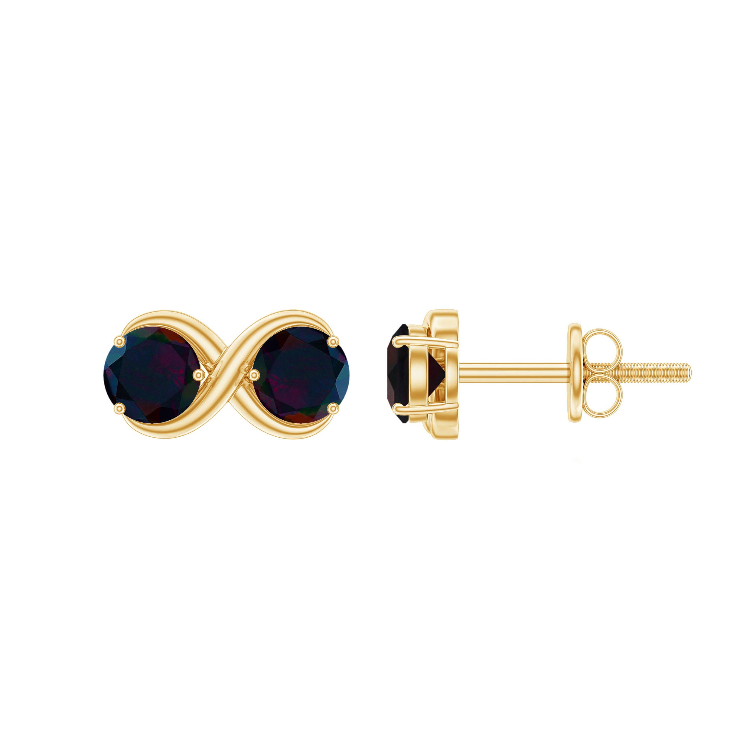 Express your infinite love with these stunning Infinity Earrings, a perfect symbol of timeless connection and style. Each earring features two captivating 5 mm Black Opal gemstones set in Prong Setting, their deep, mysterious hues dancing with flashes of color that make every movement magical. The infinity design represents endless love and lasting elegance, while the AAA Quality Black Opal subtly enhances their brilliance, creating a piece that is both meaningful and eye-catching. Designed with secure Screw Back Closure, these Black Opal Earrings stay comfortably in place, giving you peace of mind while you shine. These October Birthstone Earrings can effortlessly elevate your everyday outfits or add a touch of sophistication to special occasions. Delivered ready to gift in a sleek jewelry box, these Black Opal Studs make a thoughtful present for someone you cherish or a beautiful treat for yourself. Whether paired with casual attire or elegant evening wear, these Opal Ear Studs are a modern take on classic elegance, blending bold opal charm with delicate craftsmanship. Let these Love Knot Earrings be a statement of love and style, capturing attention and hearts wherever you go.