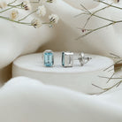Natural 4X6 MM Emerald Cut Aquamarine Stud Earrings