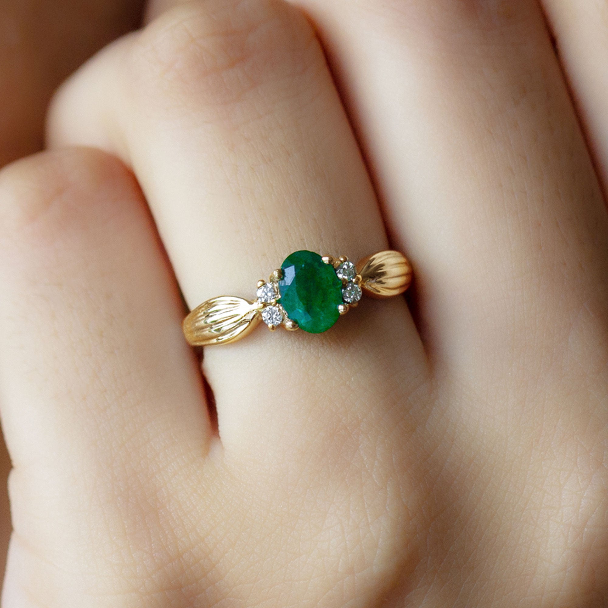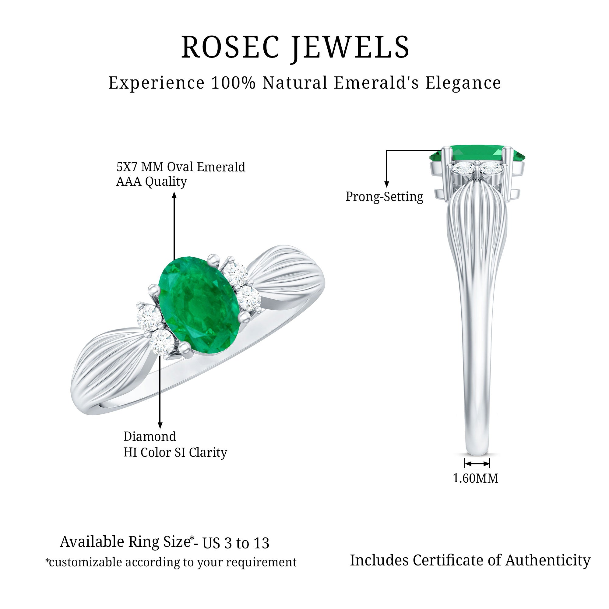 Natural 5X7mm Emerald Oval Engagement Ring with Diamond