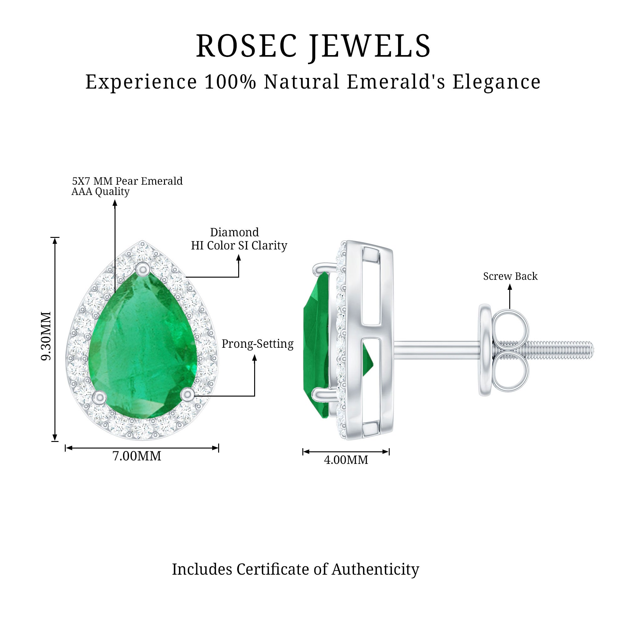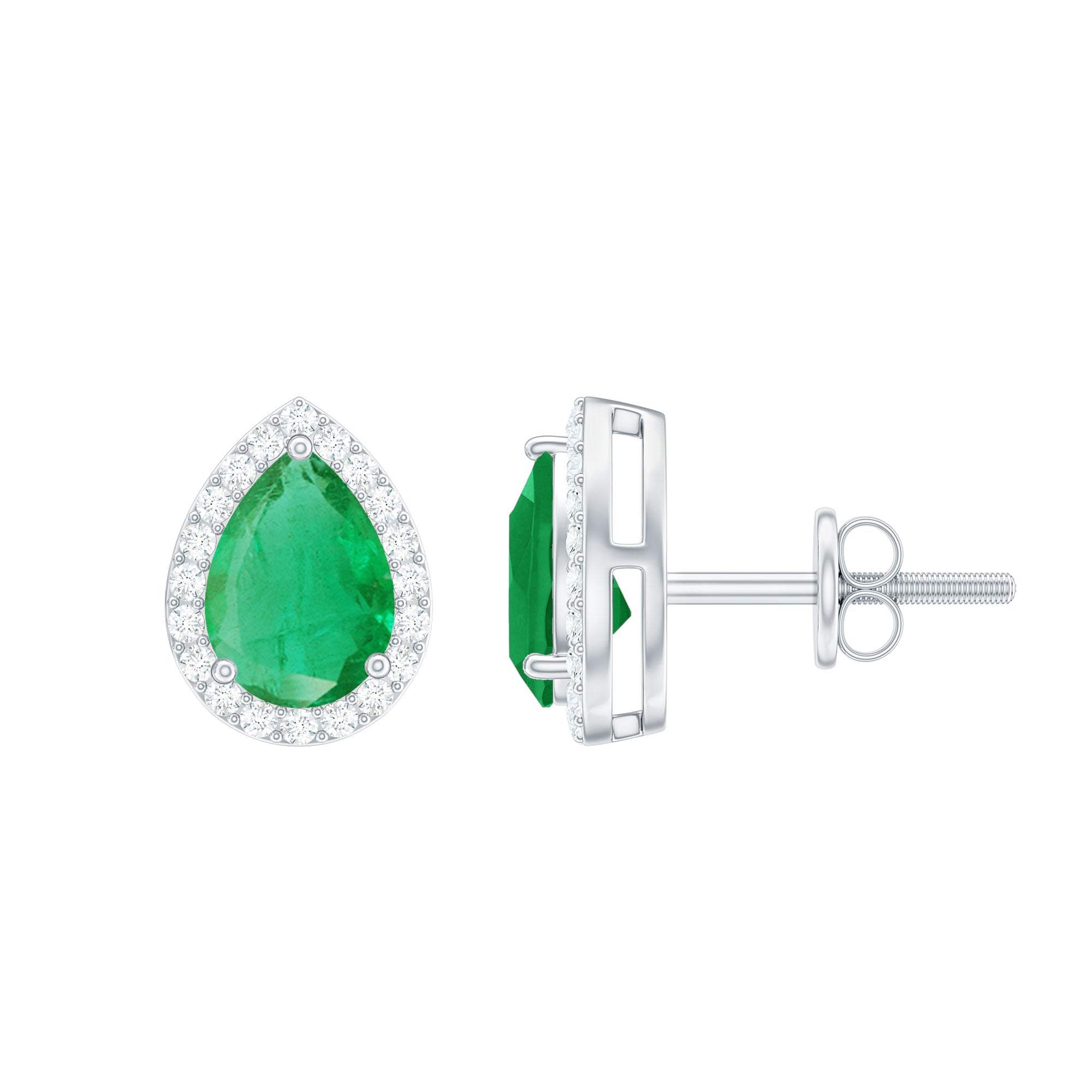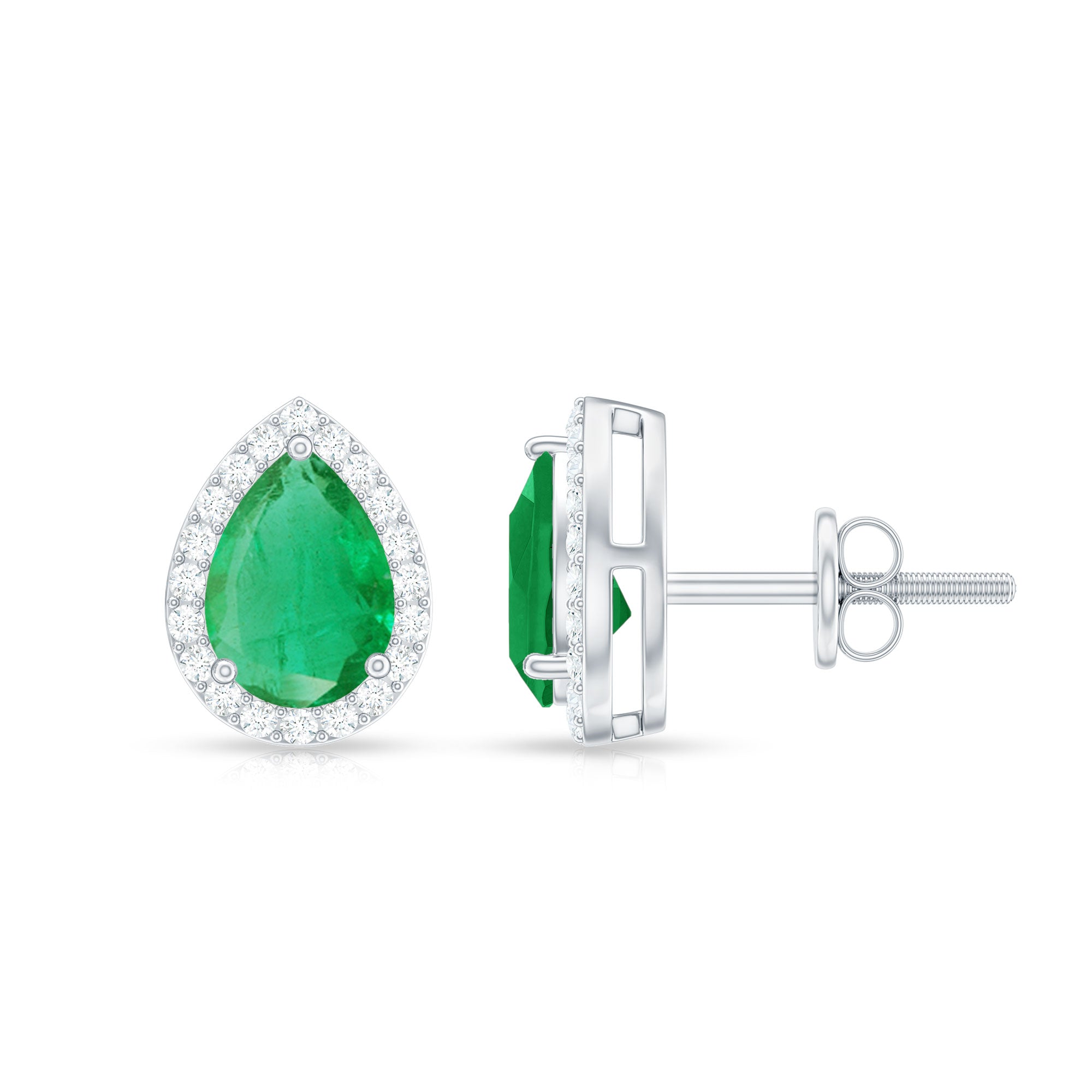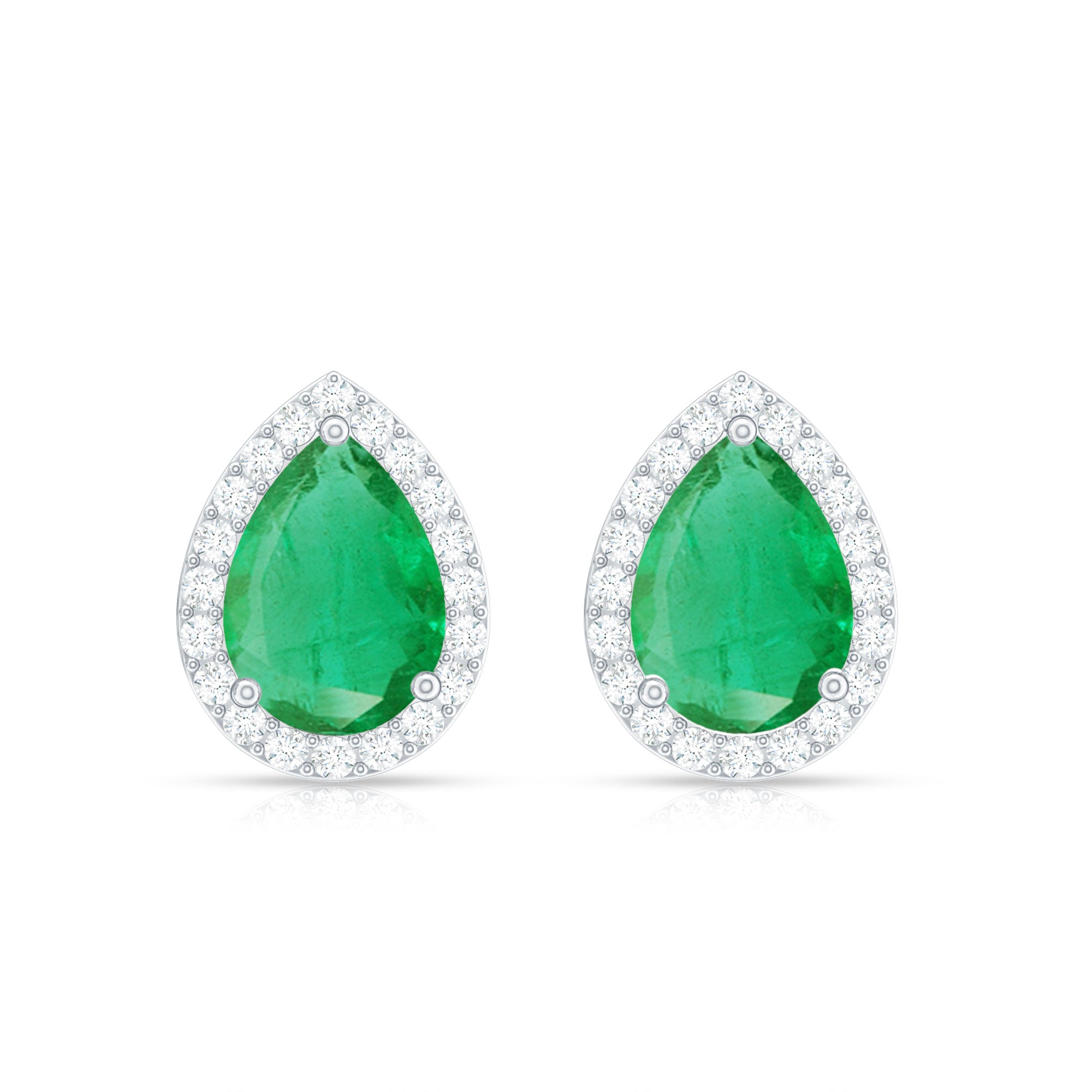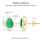 Natural 5X7mm Pear Shape Emerald Stud Earrings with Diamond Halo