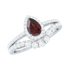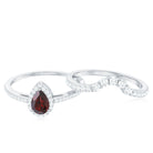 Natural 5X7mm Pear Shape Garnet Diamond Wedding Engagement Ring Set