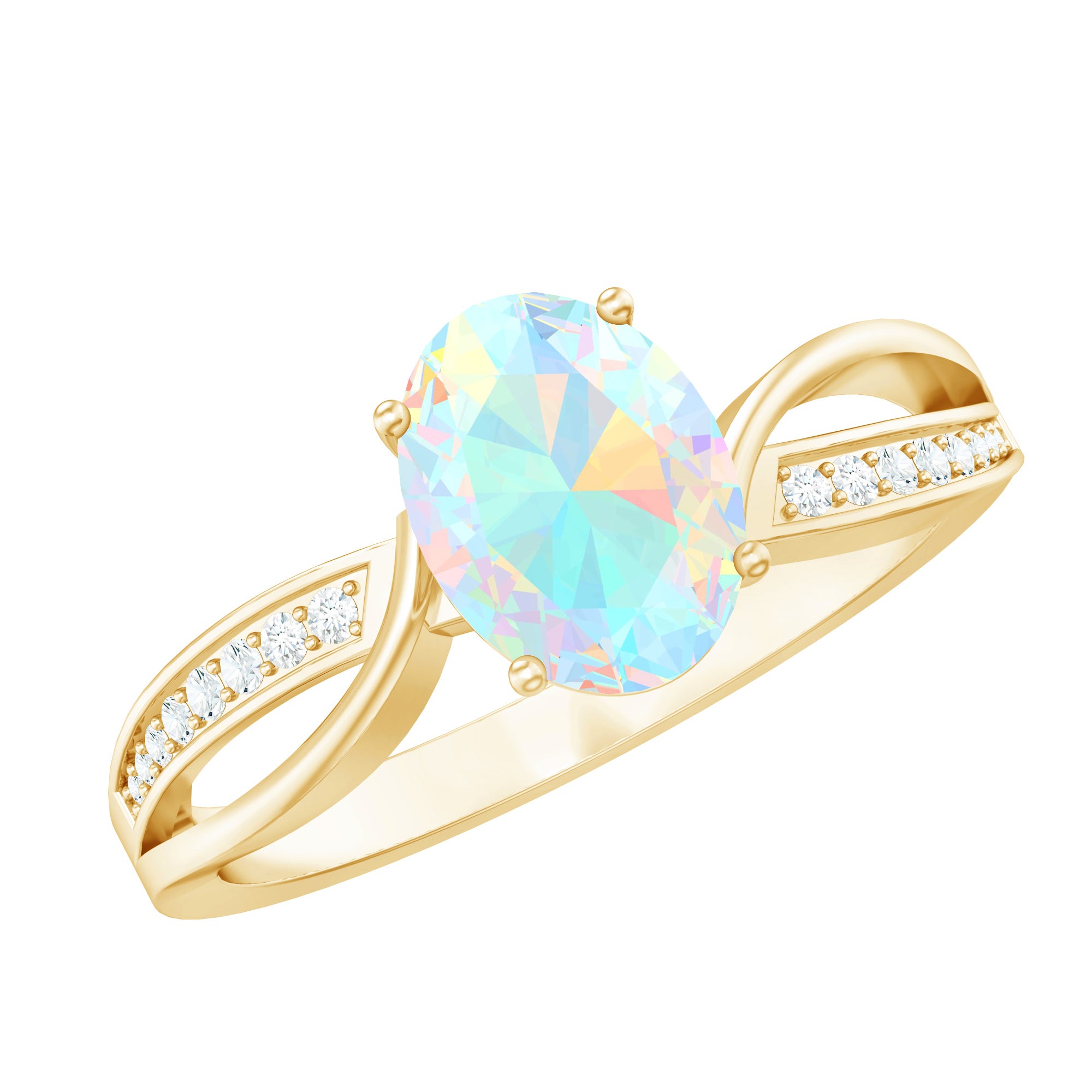 Natural 6X8 mm Oval Opalescent Diamond Engagement Ring with Split Shank