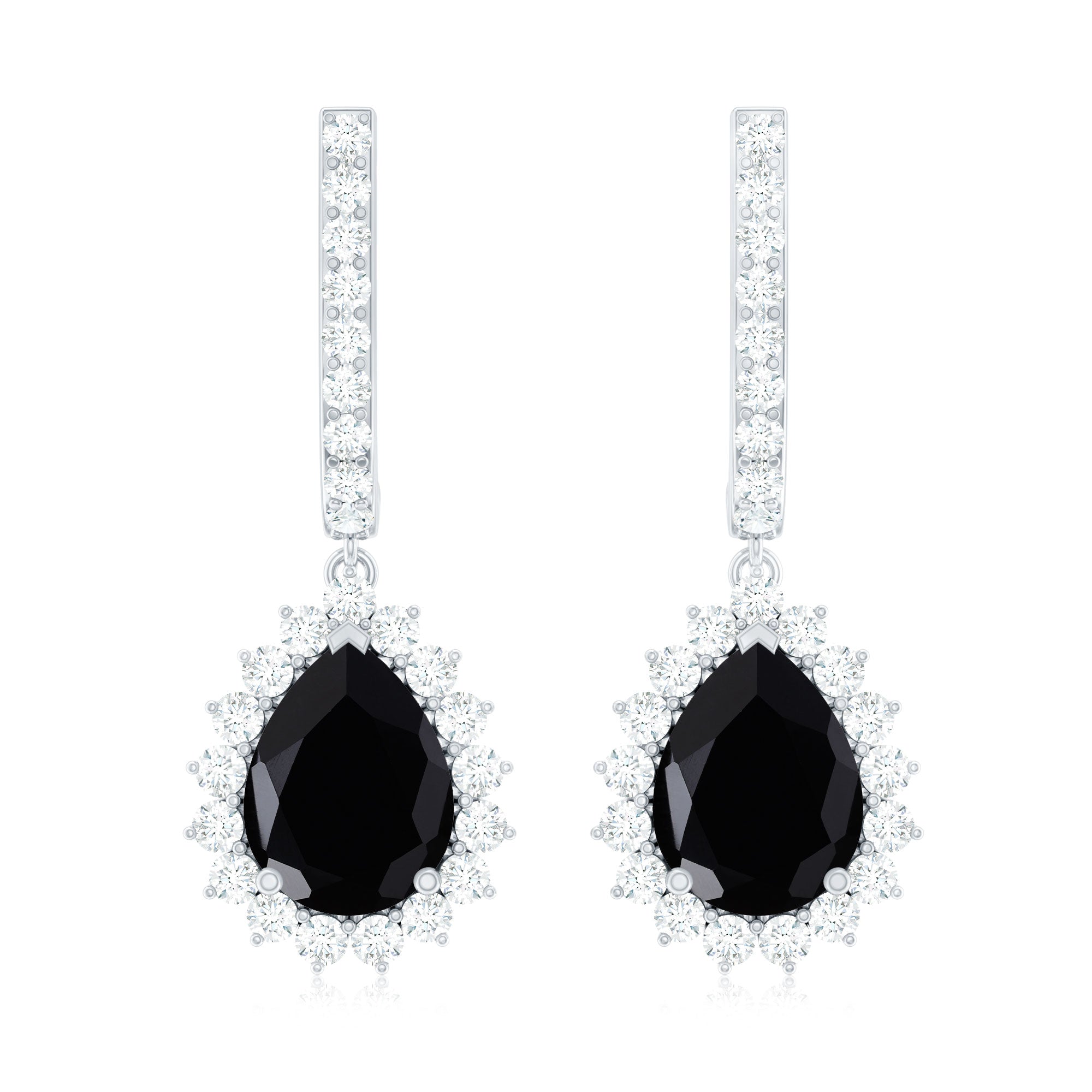 Natural 6X8mm Black Spinel Teardrop Earrings with Moissanite Halo