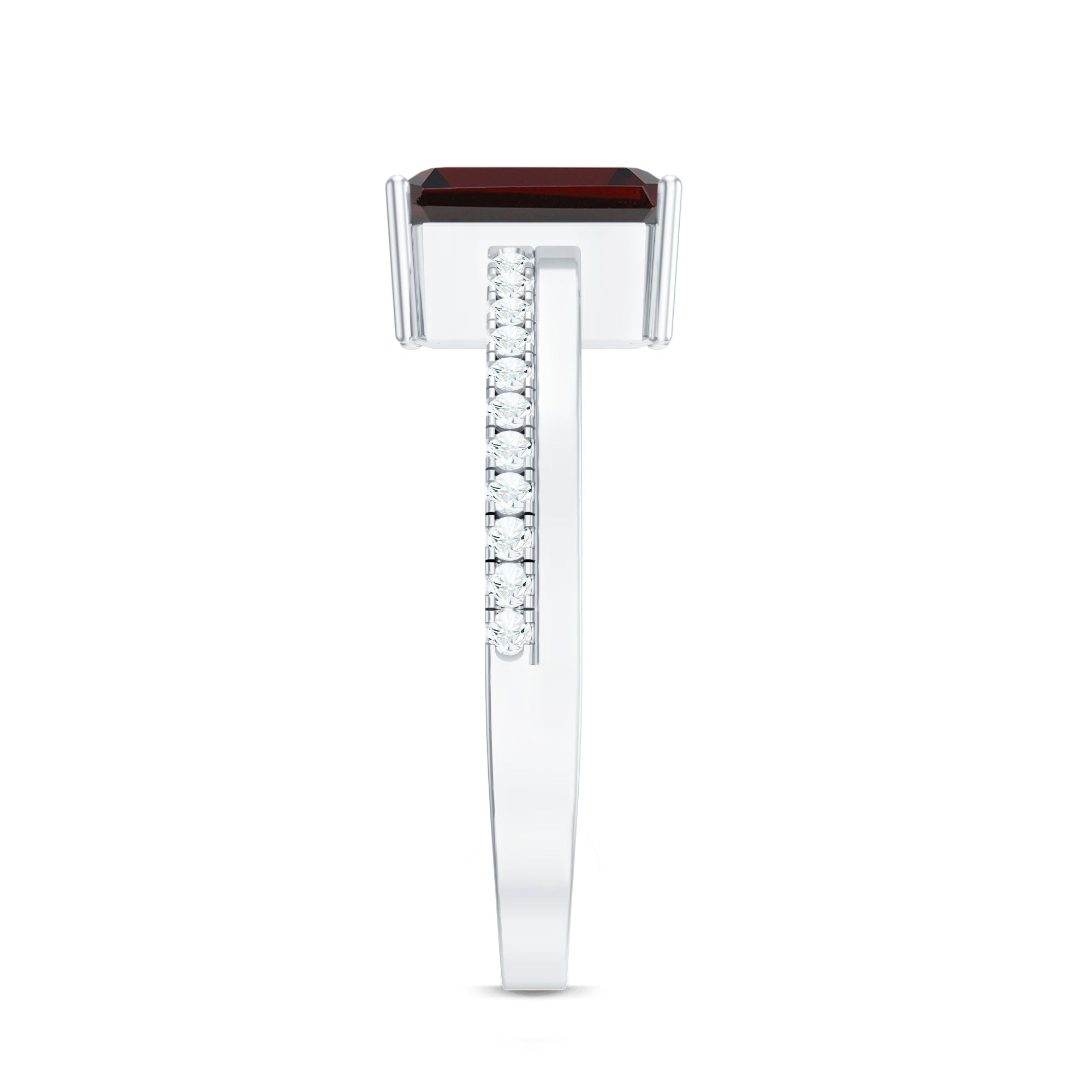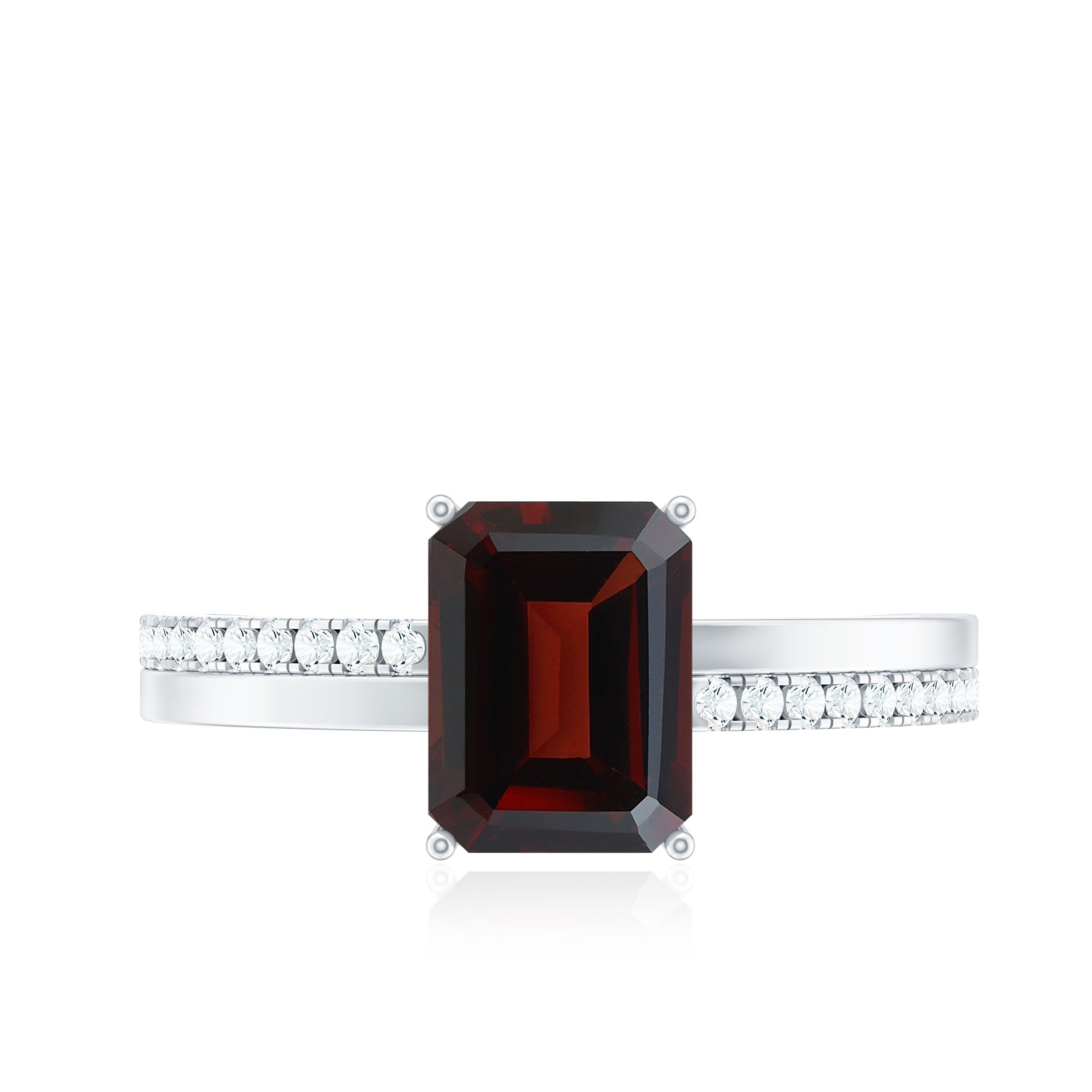 Natural 6X8mm Garnet Emerald Cut Engagement Ring with Diamond