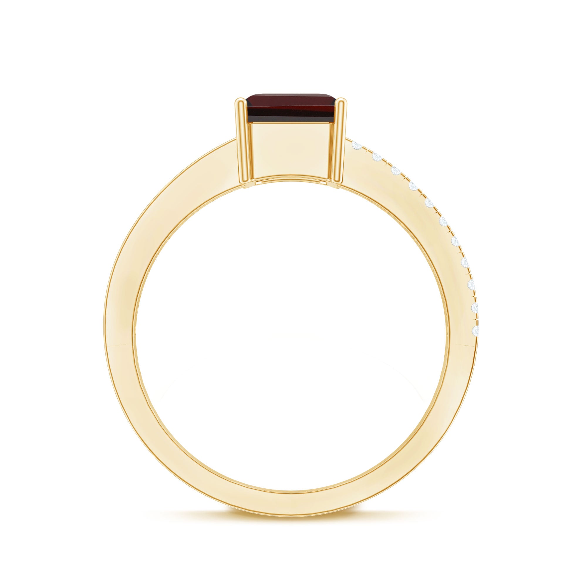 Handcrafted to capture hearts, this Emerald Cut Engagement Ring is a stunning expression of love and devotion. The 6X8 mm Emerald Cut Garnet in Prong Setting at its center radiates passion and elegance, creating a timeless, sophisticated look that catches the light beautifully. Flanked by sparkling Diamond Side Stones, this Garnet Diamond Ring sparkles with understated glamour, adding the perfect touch of brilliance without overpowering the natural beauty of AAA Quality Garnet. Designed with care and available in various US ring sizes, this Solitaire Engagement Ring with Garnet is comfortable to wear and built to be cherished for a lifetime. Delivered in a signature jewelry box, this Garnet Solitaire Ring arrives ready to gift, making any proposal, anniversary or special occasion unforgettable. This Emerald Cut Ring combines classic elegance with modern design, allowing it to complement everyday wear or elevate formal ensembles effortlessly. Let this engagement ring shine as a reminder of your heartfelt commitment, a timeless keepsake that celebrates romance and a love meant to last forever.