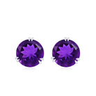 Natural 7mm Solitaire Amethyst Stud Earrings with Certificate