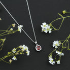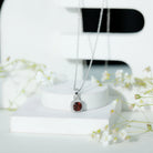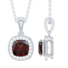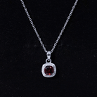 This Halo Pendant Necklace shines with a rich red hue of AAA quality Garnet, making it an ideal choice for a bold fashion statement. Made from 14K White Gold Plated Silver, it features an 8 MM Cushion Cut Garnet set securely in prong setting, framed by smaller Moissanite Stones in a halo design. Its a stunning piece for any jewelry lover. The Red Gem Necklace hangs from a standard bail and is attached to a durable cable chain. With its classic and minimalist style, this Real Garnet Necklace symbolizes love and devotion, making it a perfect gift for someone special. The vibrant red of the garnet beautifully contrasts with the white gold and the halo of Moissanites. It is destined to be a cherished part of any jewelry collection, ideal for those who love the elegance of fine jewelry. It adds a touch of luxury to both everyday outfits and special occasions. Additionally, this Garnet Silver Necklace is a fantastic gift for January birthdays or to celebrate significant milestones together. It exudes a royal charm and has a seamless shine. We send this beautiful and luxurious pendant necklace in a high-quality velvet pouch along with a certificate of authenticity.