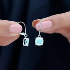 Natural 8MM Cushion Cut Rainbow Opal Hoop Drop Earrings