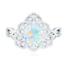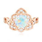 Natural 8mm Ethiopian Opal Flower Engagement Ring with Diamond