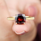 This stunning Cushion Cut Engagement Ring is a captivating celebration of love that sparkles with meaning and elegance. At its center, a stunning 8 mm Cushion Cut Garnet set in 4 Prong Setting radiates deep red passion, symbolizing devotion and the strength of a lasting bond. Placed subtly beneath the AAA Quality Garnet, two dainty Diamond stones add an extra touch of magic, a secret sparkle that reflects the unexpected joys and treasured moments of a shared life together. Its timeless design combines classic romance with a modern twist, making this Cushion Cut Garnet Ring perfect for engagements, anniversaries or as a memorable gift to mark a special milestone. The rich red hue beautifully complements the Surprise Diamond, creating a harmonious blend of boldness and delicacy. Thoughtfully crafted and presented in a signature jewelry box, this Garnet Engagement Ring is ready to gift and ready to become a cherished symbol of love. Available in various US ring sizes, this Solitaire Engagement Ring with Garnet is a story of connection, devotion and the excitement of a lifelong journey together.