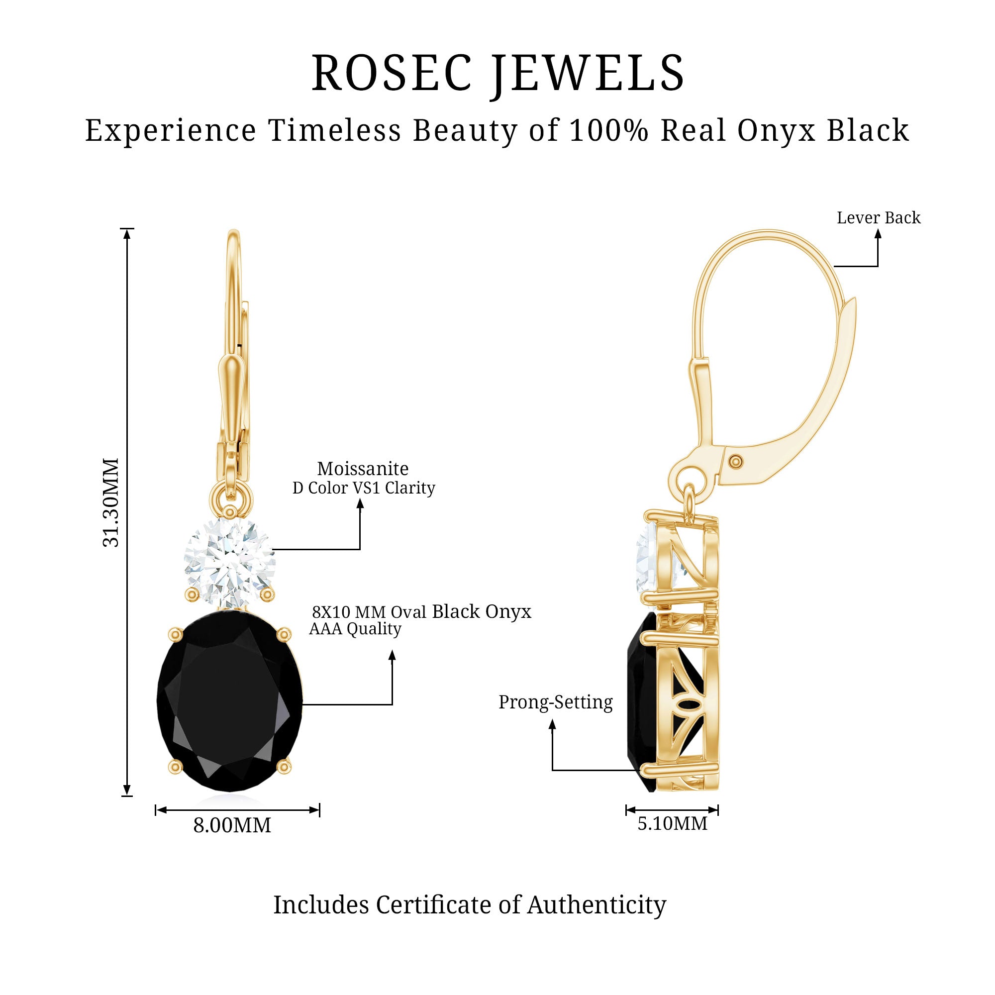 Upgrade your jewelry collection with these stunning Black Onyx Drop Earrings, designed to turn heads and add an air of sophisticated glamour to any look. The big 8X10 mm Black Onyx stones are perfectly shaped into an elegant Oval, hanging delicately with a sparkling round 5 mm Moissanite, known for its brilliant sparkle and fire. The combination of the bold AAA Quality Black Onyx and the dazzling D-VS1 Moissanite creates a striking contrast, making these Black and White Earrings the ultimate statement piece for both day and night. The secure Lever Back Closure ensures they stay comfortably in place, so you can wear them with confidence, whether you are dressing up for a night out or adding a touch of luxury to your everyday style. Arriving in a beautiful jewelry box, these Hoop Drop Earrings are ready to gift to someone special or to treat yourself to something extraordinary. Their timeless design pairs effortlessly with everything from chic cocktail dresses to casual outfits, making them a versatile addition to your collection. Elegant yet edgy, these Onyx Black Earrings exude confidence and class, giving you that perfect pop of sparkle that catches the light with every move.