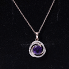 Make a statement wherever you go with this Minimal Amethyst and Diamond Braided Halo Pendant. Perfect for any occasion, whether its a family dinner or an easy-breezy office brunch meeting, this swirl pendant is sure to turn heads and make you the center of attention. Dont miss out on the chance to rock the stage with this stunning piece of jewelry.