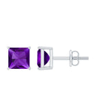 Natural Amethyst Princess Cut Earrings with Screw Back