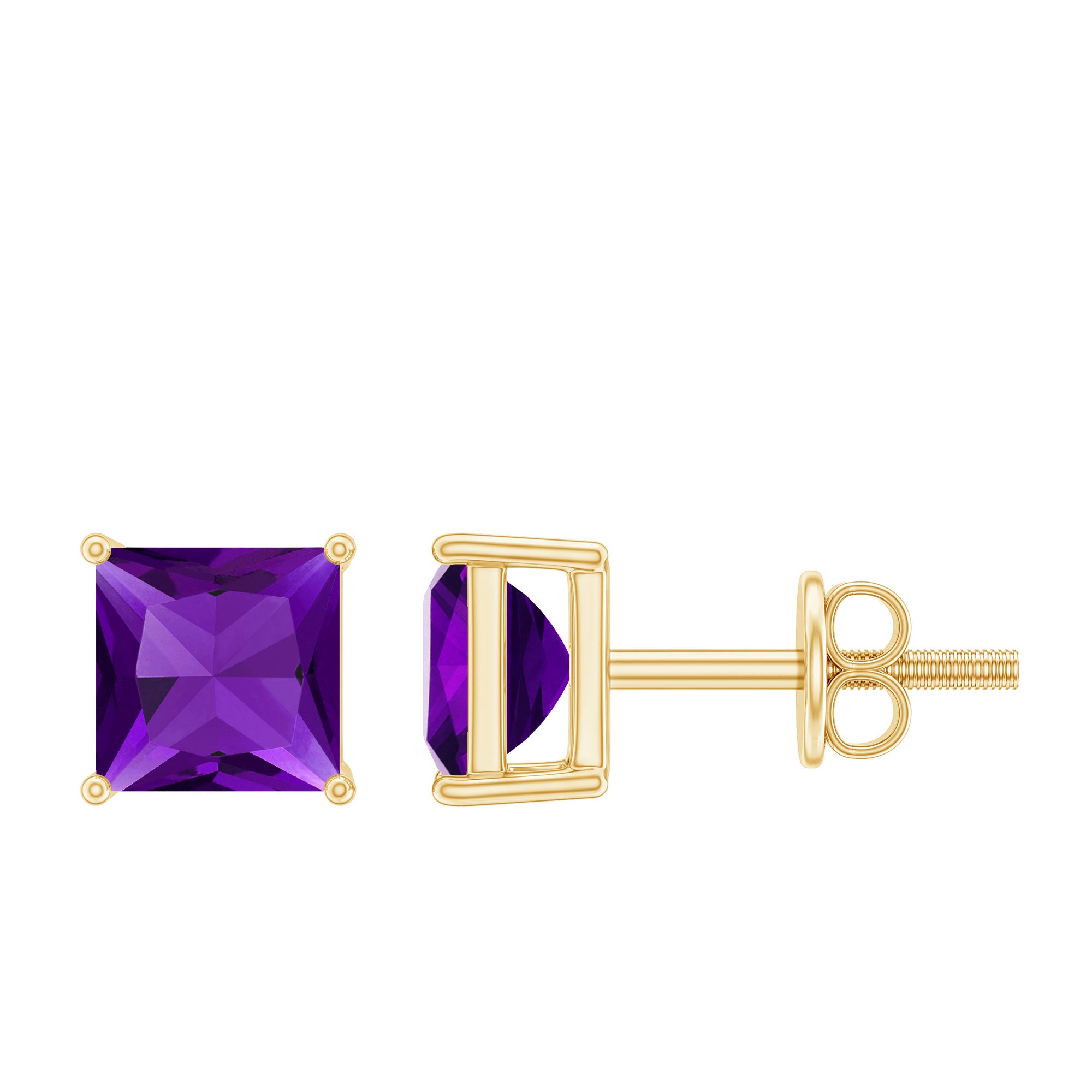 Enhance your everyday look with the captivating glow of these Amethyst Stud Earrings, a perfect fusion of elegance, color and charm. Each earring showcases a 6 mm Princess Cut Amethyst set in 4 Prong Setting, radiating a royal purple hue that symbolizes passion, creativity and inner peace. The Princess Cut of the AAA Quality Amethyst adds a modern touch to a timeless gemstone, making these Amethyst Studs a must-have for both casual wear and special occasions. Secured with Screw Back Closure, these February Birthstone Earrings ensure comfort and confidence all day long, so you can shine effortlessly. Whether paired with a chic dress or your favorite everyday outfit, these Amethyst Ear Studs bring a touch of luxury and romance to any ensemble. Beautifully packaged in a signature jewelry box, they also make a thoughtful gift for birthdays, anniversaries or simply to show love. Sophisticated yet subtle, these Princess Cut Earrings are a reflection of elegance, grace and the radiant beauty that lives within you.