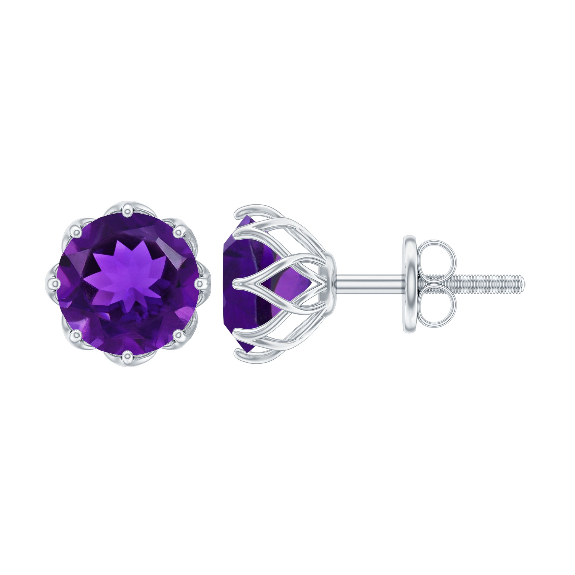 Natural Amethyst Solitaire Stud Earrings with Screw Back