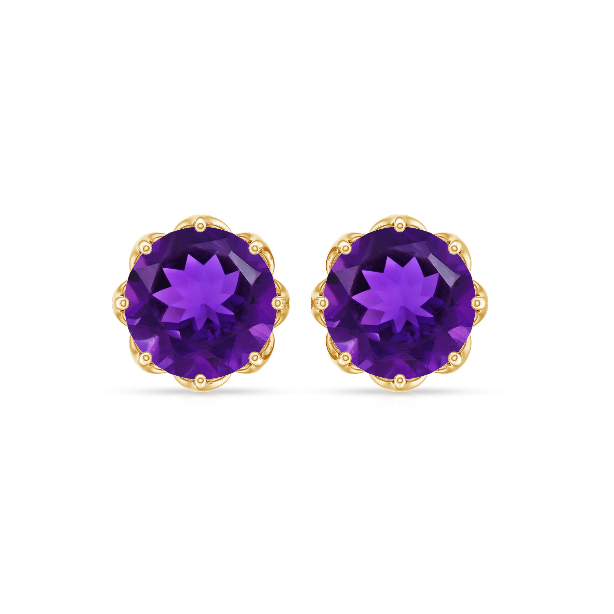 As a gemstone of calm and clarity, Amethyst carries an aura of grace that makes these Solitaire Stud Earrings truly enchanting. Each earring features a 7 mm Round Shape Amethyst that glows with regal purple hues, a timeless symbol of peace, balance and inner strength. Set in a unique style, the AAA Quality Amethyst radiates effortless elegance, perfect for adding a touch of romance and sophistication to any look. The Screw Back Closure ensures a secure and comfortable fit, allowing you to wear them with confidence from morning coffee dates to evening celebrations. Whether paired with casual wear or your favorite office outfit, these Amethyst Ear Studs bring a subtle yet captivating sparkle that never goes unnoticed. Ideal as a February birthstone gift, a token of love or a treat for yourself, these Amethyst Stud Earrings embody both meaning and style in perfect harmony. Beautifully presented in an elegant jewelry box, these Amethyst Earrings for Women are ready to make every moment shine.