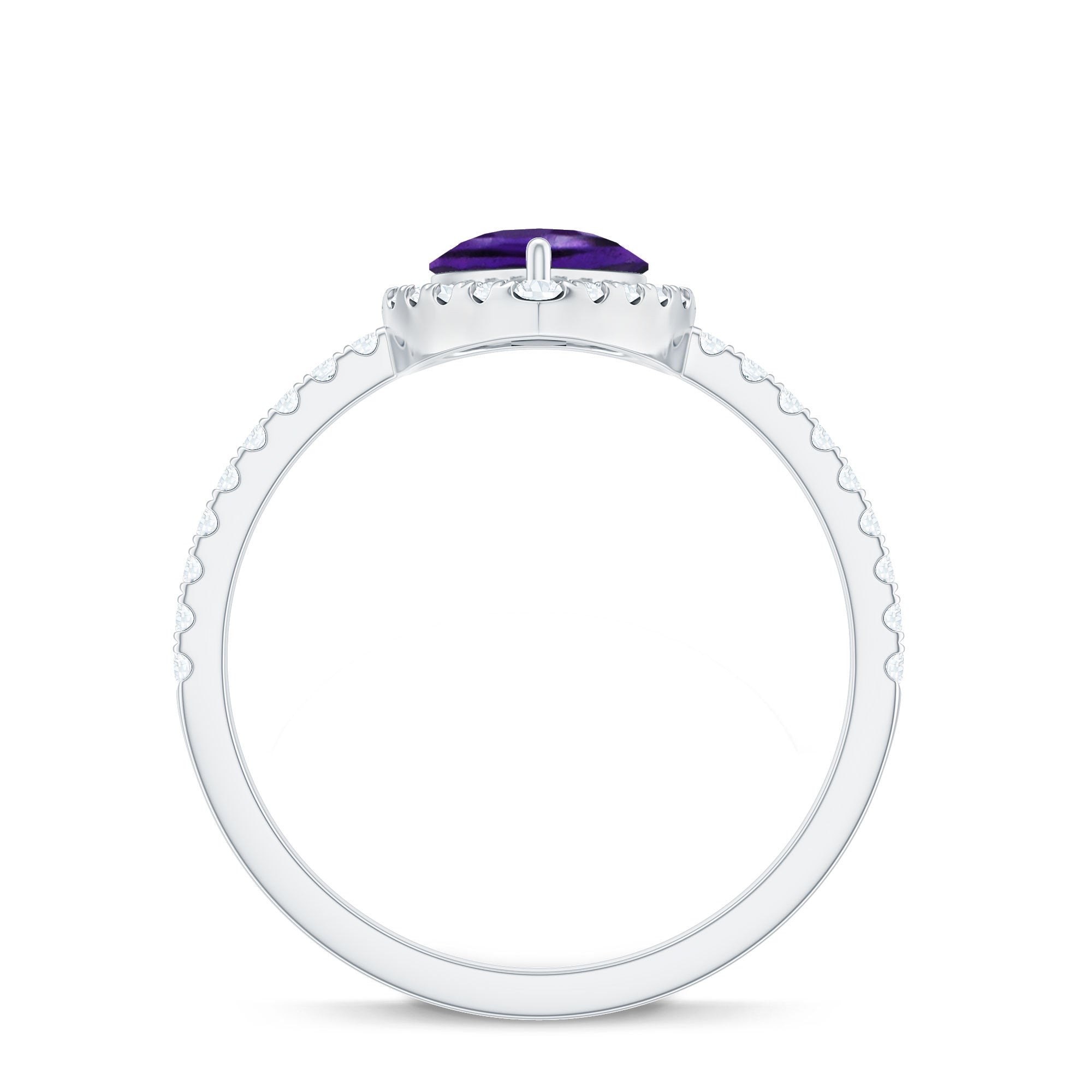Natural Amethyst Teardrop Engagement Ring with Diamond Halo