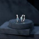 Natural Aquamarine Diamond Hoop Earrings in Sterling Silver