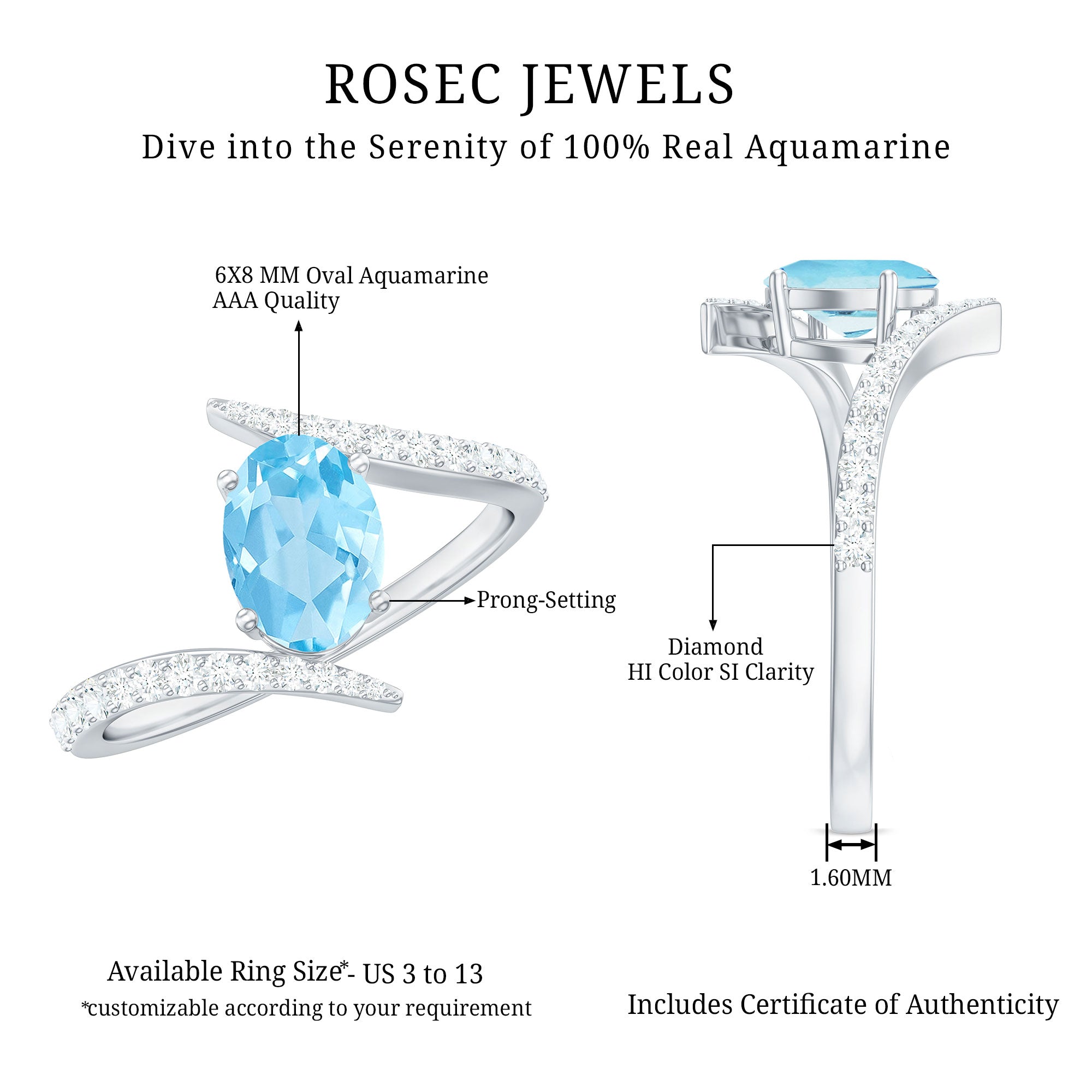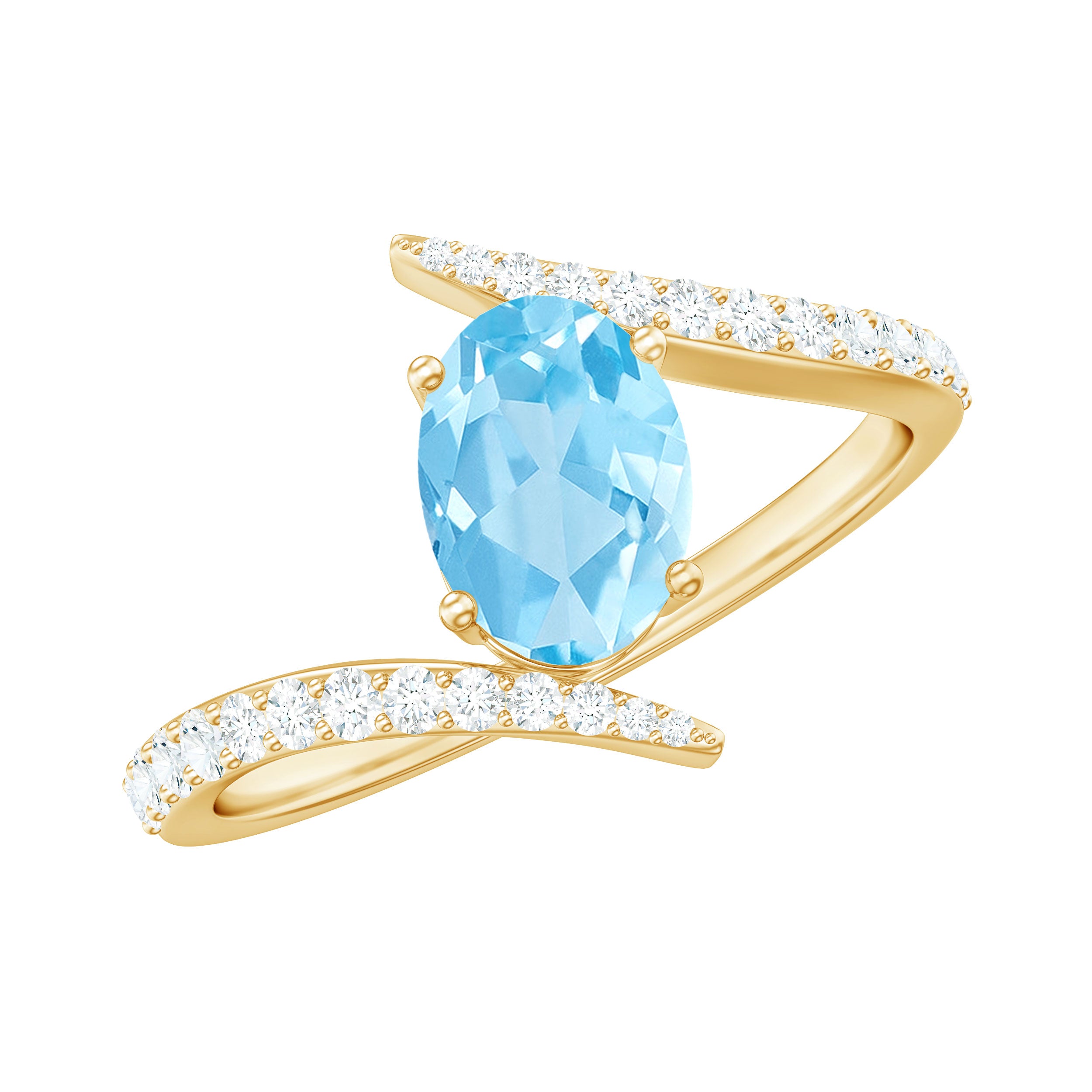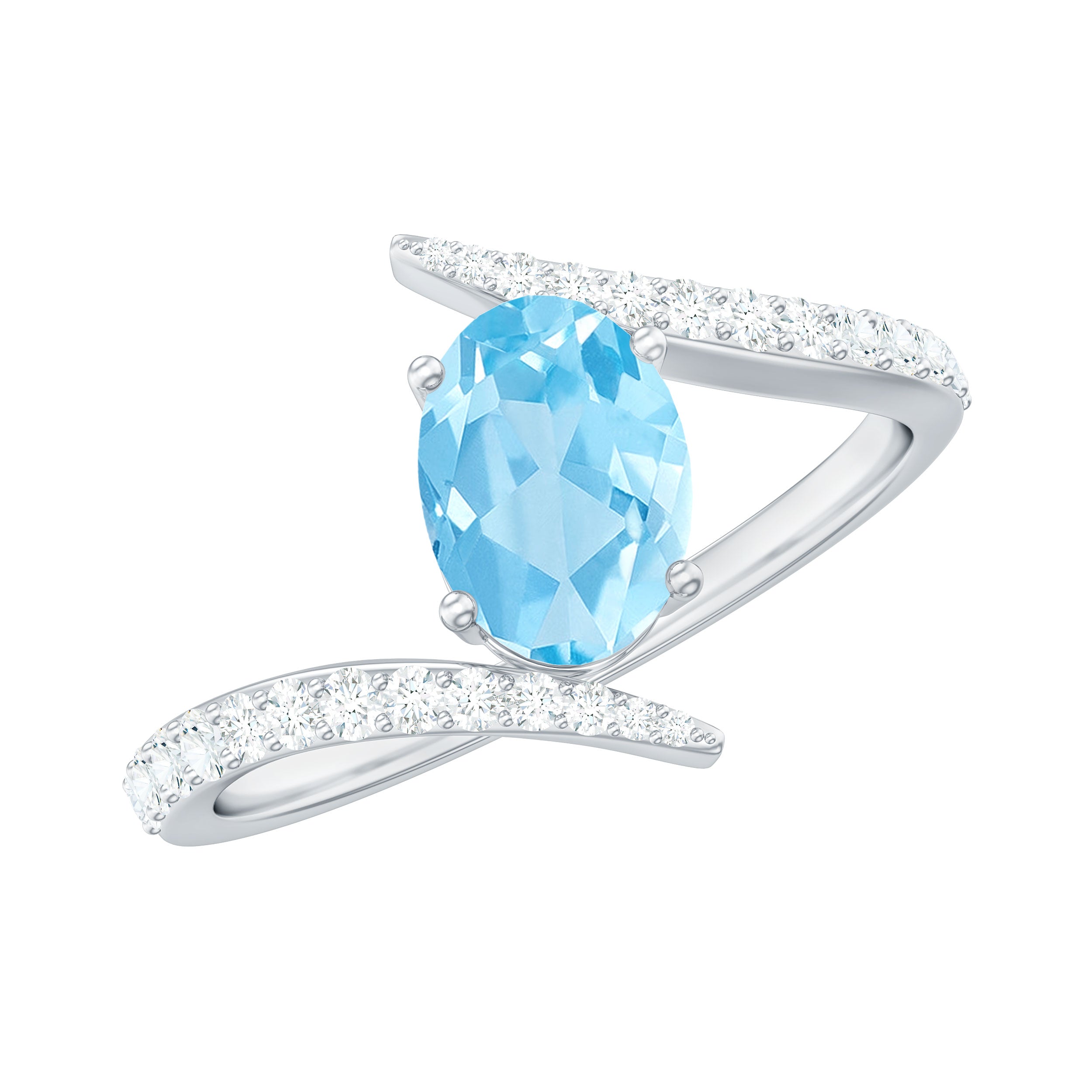 Natural Aquamarine Oval Engagement Ring with Diamond Bypass Shank