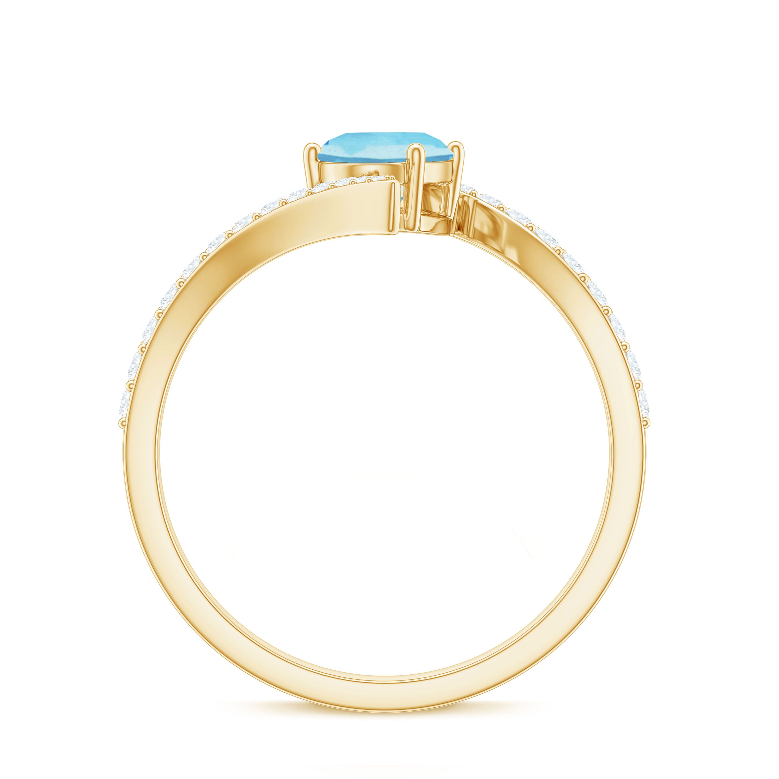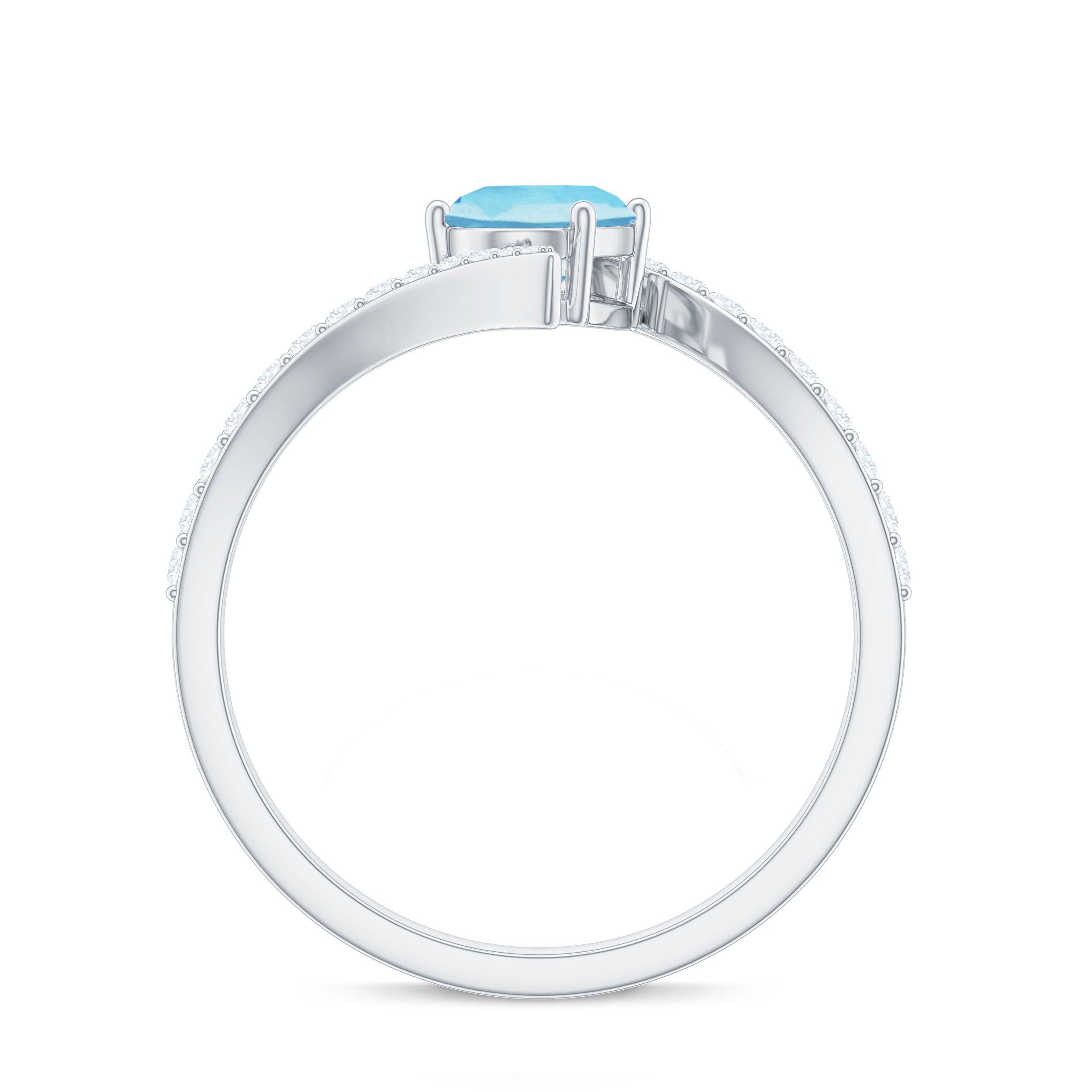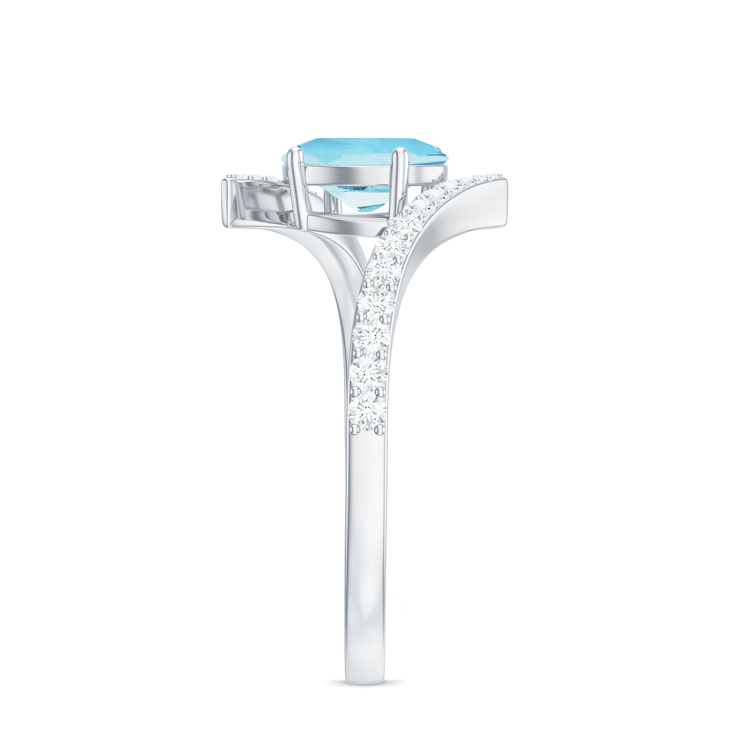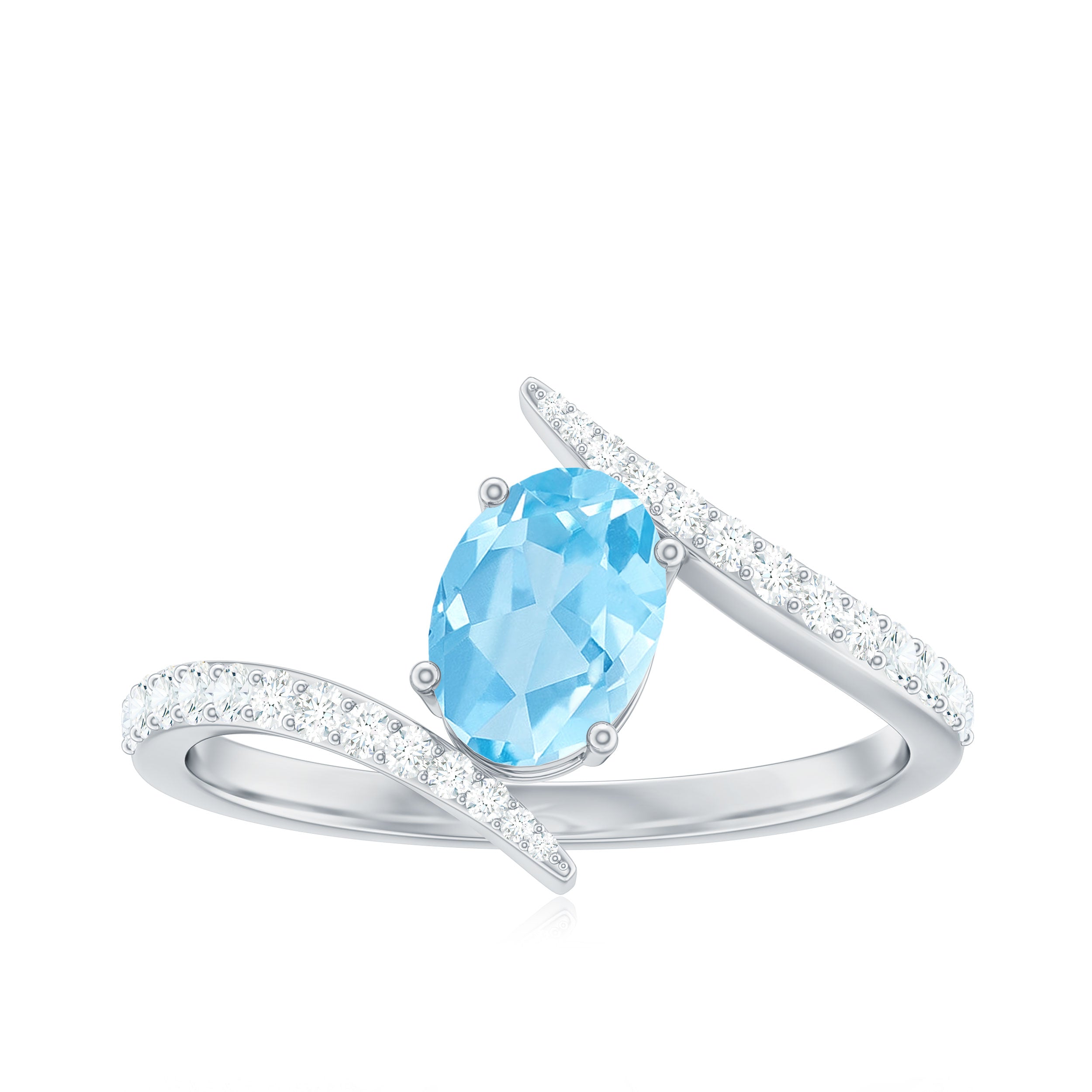 Natural Aquamarine Oval Engagement Ring with Diamond Bypass Shank