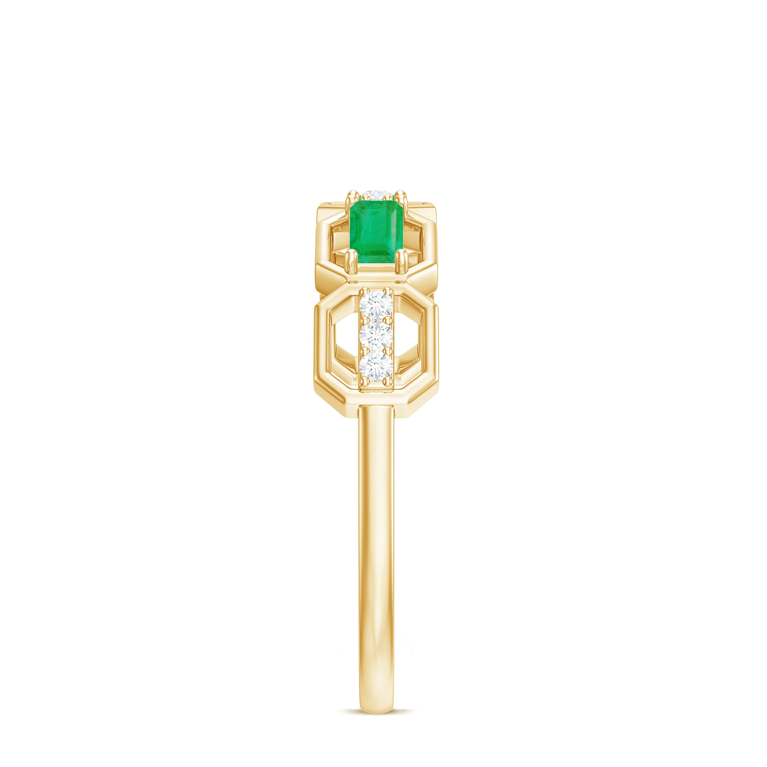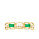 Modern and filled with sentiment, this Emerald Band Ring is a stunning expression of love that stands the test of time. Designed in a captivating geometric pattern, this Wedding Anniversary Ring features Baguette Shape Emerald gemstones set horizontally in Prong Setting, their rich green hues symbolizing harmony and growth. Between them, delicate Round Shape Diamond stones shimmer with endless brilliance, representing everlasting devotion. The alternating layout creates a beautiful contrast of color and sparkle, blending contemporary elegance with timeless romance. This Emerald Diamond Ring is perfect for celebrating milestones, anniversaries or simply the joy of being together. The East West design gives it a unique charm, while still holding deep emotional meaning. Presented in a signature jewelry box and available in various sizes, this Baguette Emerald Ring makes an unforgettable gift for someone truly special.