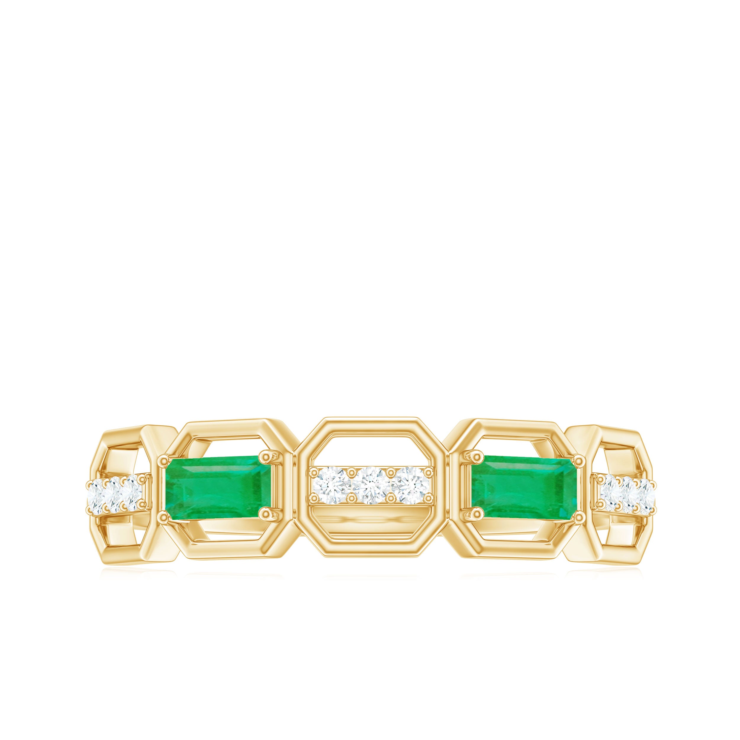 Natural Baguette Emerald Diamond Anniversary Band Ring in East West Style