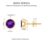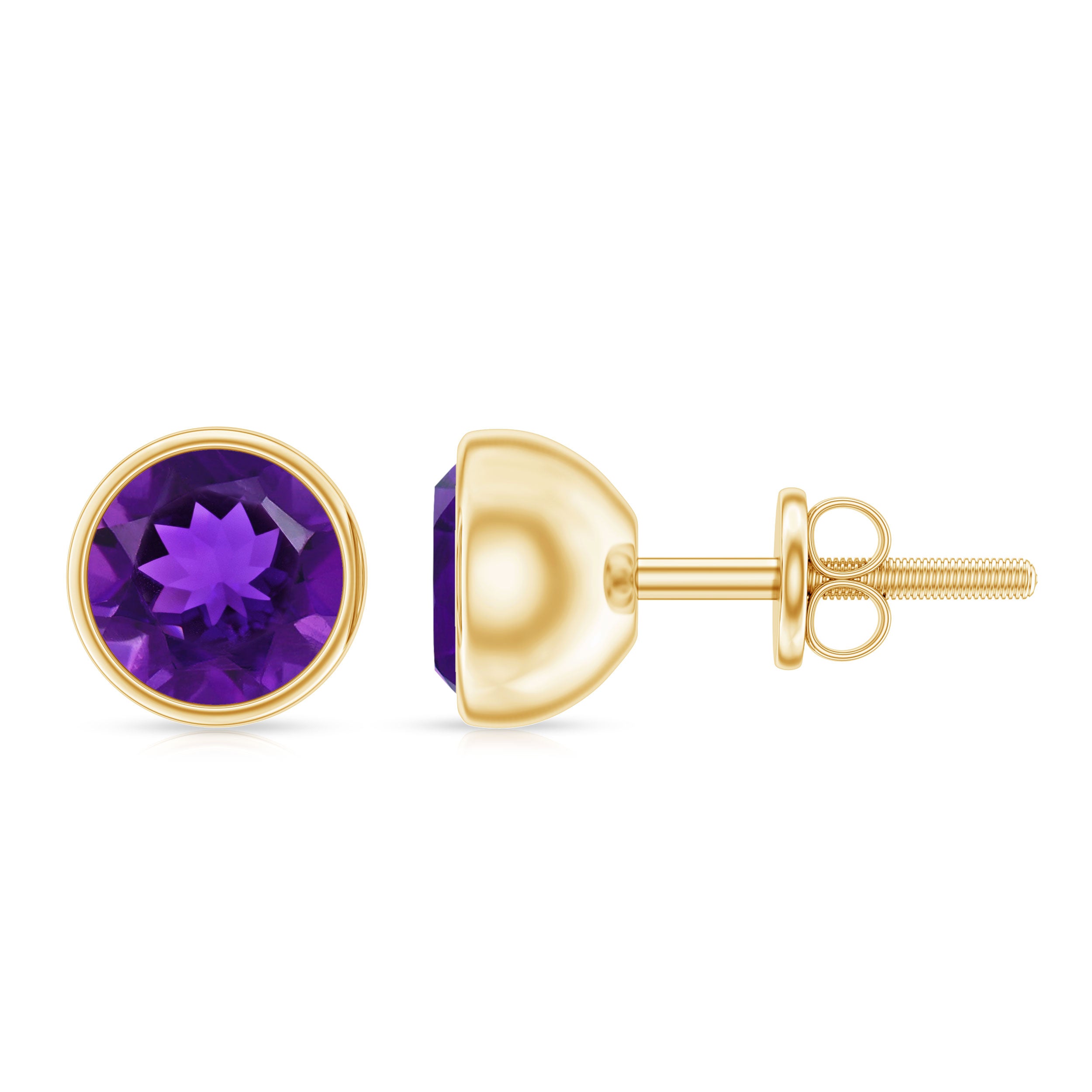 A perfect choice to enhance your everyday look, these Amethyst Stud Earrings bring a radiant touch of color and elegance to any moment. Crafted to perfection, each earring features a 7 mm Round Shape Amethyst gemstone in Bezel Setting whose deep, mesmerizing purple hue captures passion. The secure Screw Back Closure ensures comfort and confidence for all-day wear. Whether you are dressing up for a romantic evening or adding a hint of sophistication to your daily ensemble, these Bezel Set Earrings effortlessly elevate your style with their timeless charm. Their versatile appeal makes them ideal for both casual elegance and formal grace, offering a subtle yet striking statement of individuality. Presented in a signature jewelry box, these Amethyst Ear Studs make a thoughtful gift for someone special or a lovely way to treat yourself. With their delicate sparkle and refined simplicity, these Amethyst Earrings are a symbol of inner strength, beauty and the confidence that shines from within.