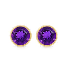 Natural Bezel Set 7mm Amethyst Stud Earrings