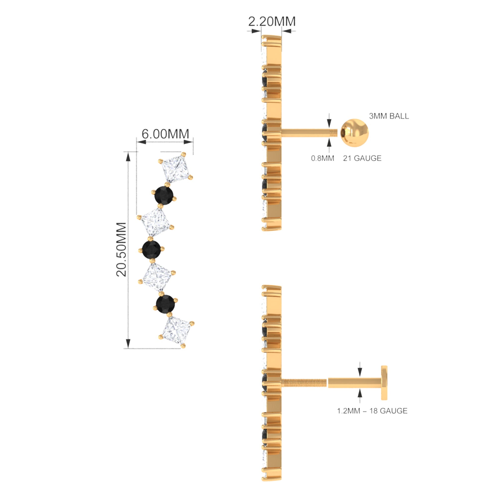 Enhance your jewelry collection with the captivating allure of our Ear Climber Earring. This exquisite piece is designed to climb up your ear, adding a touch of elegance and sophistication. It is adorned with a stunning combination of Round Cut Black Diamond and moissanite, meticulously set in a secure Prong Setting.