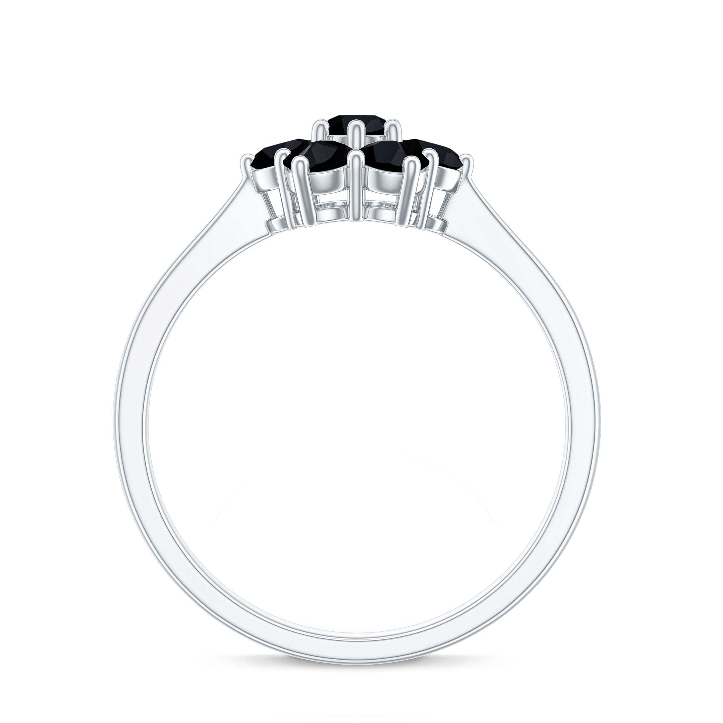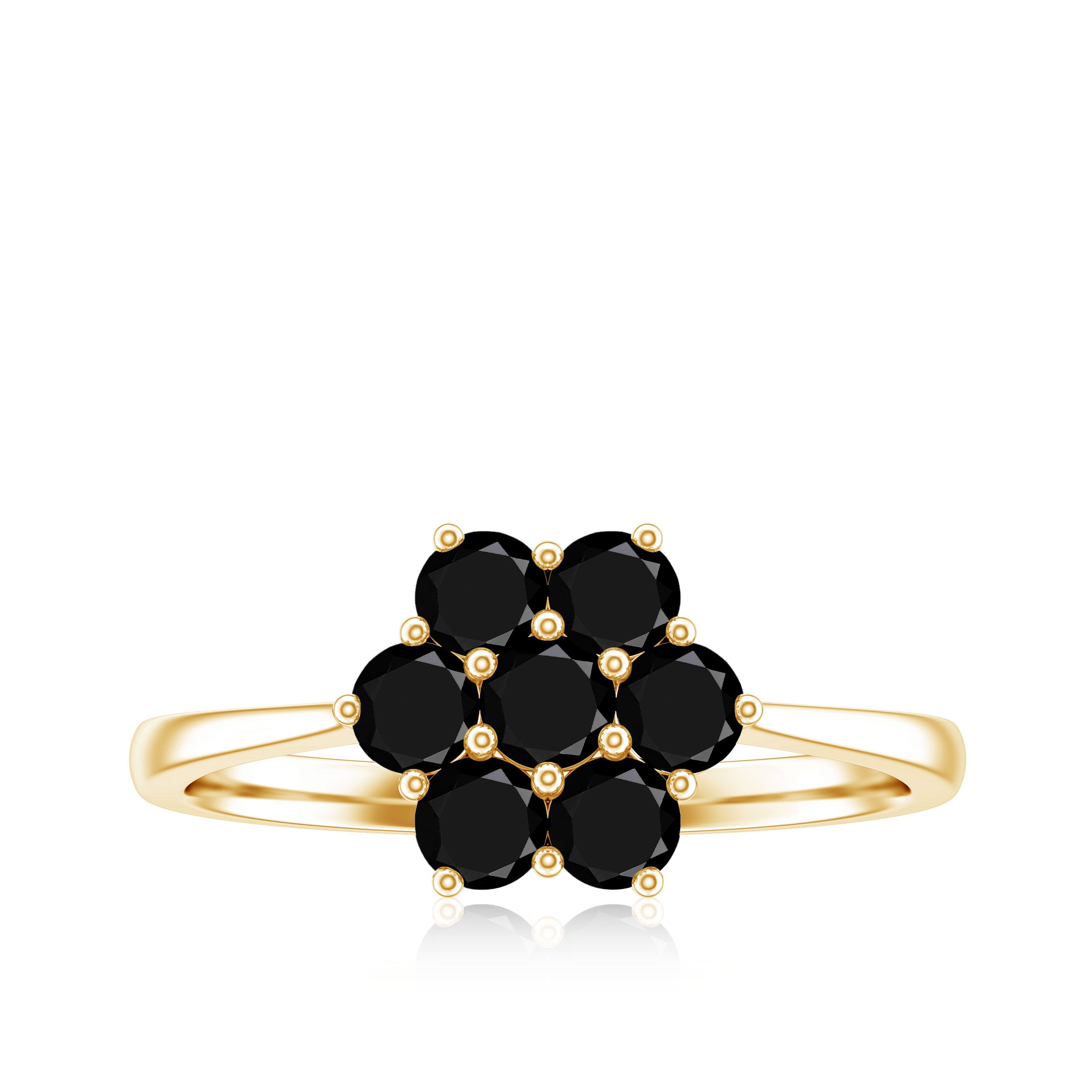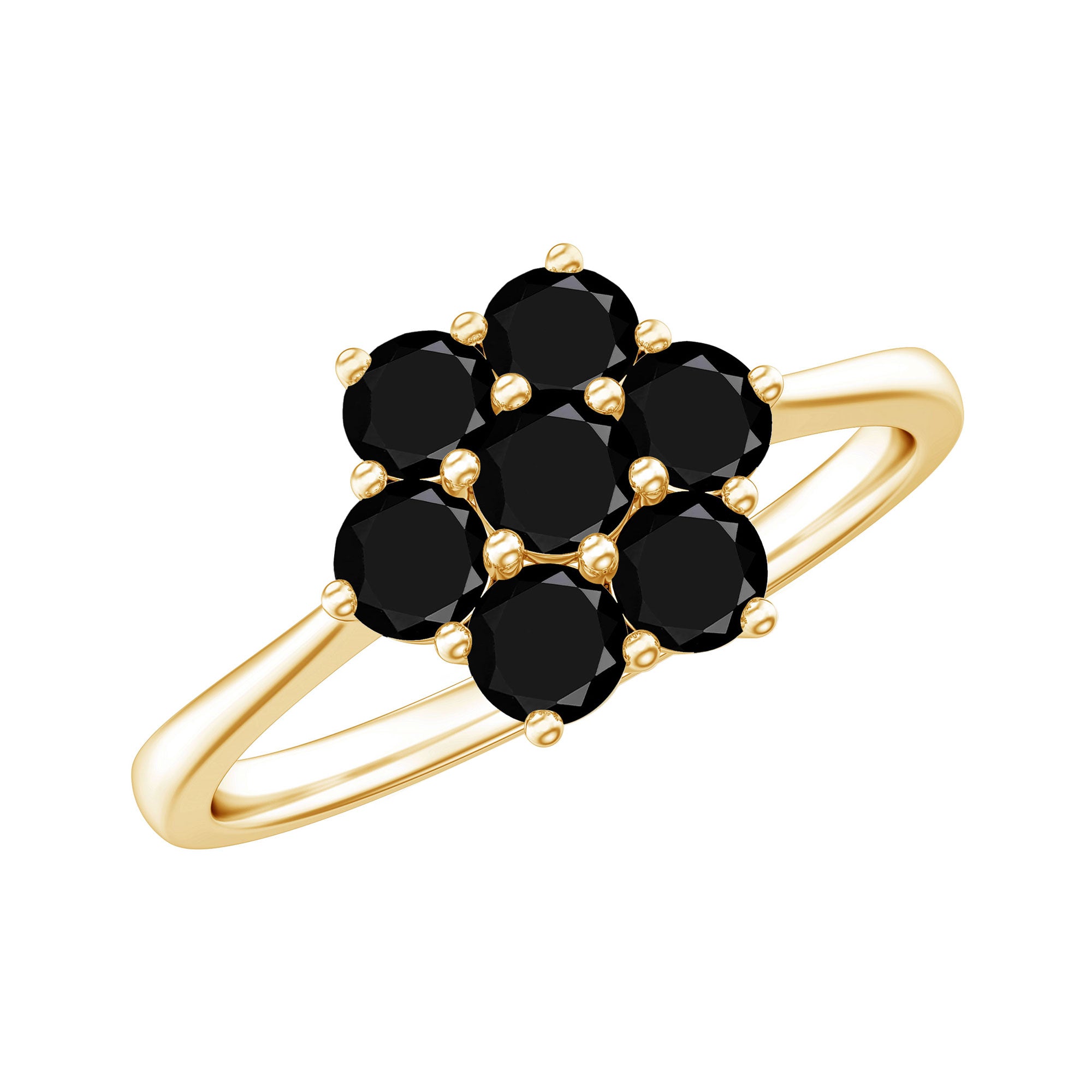 Natural Black Diamond Flower Cluster Ring in Prong Setting