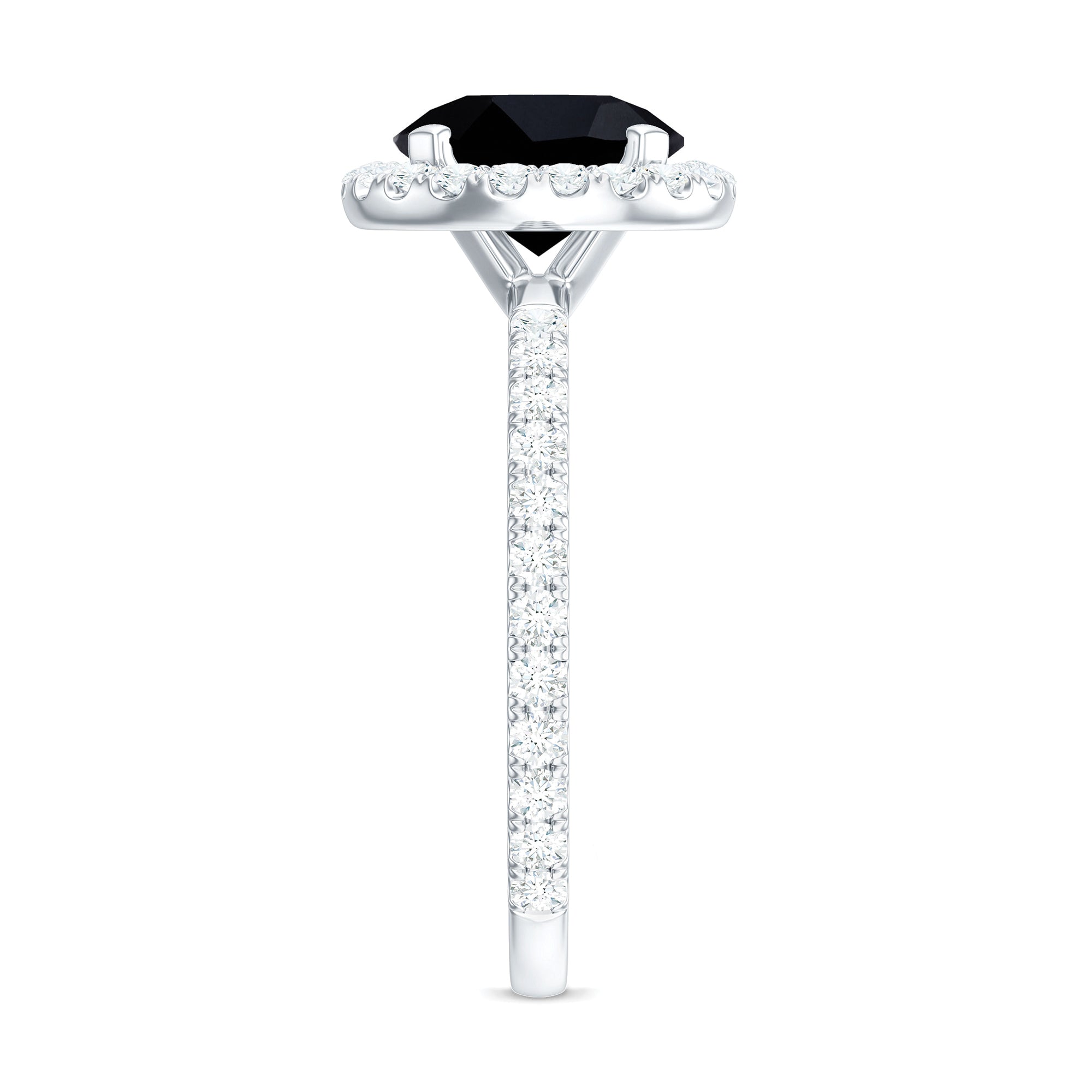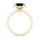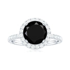 Natural Black Spinel Engagement Ring with Diamond Halo