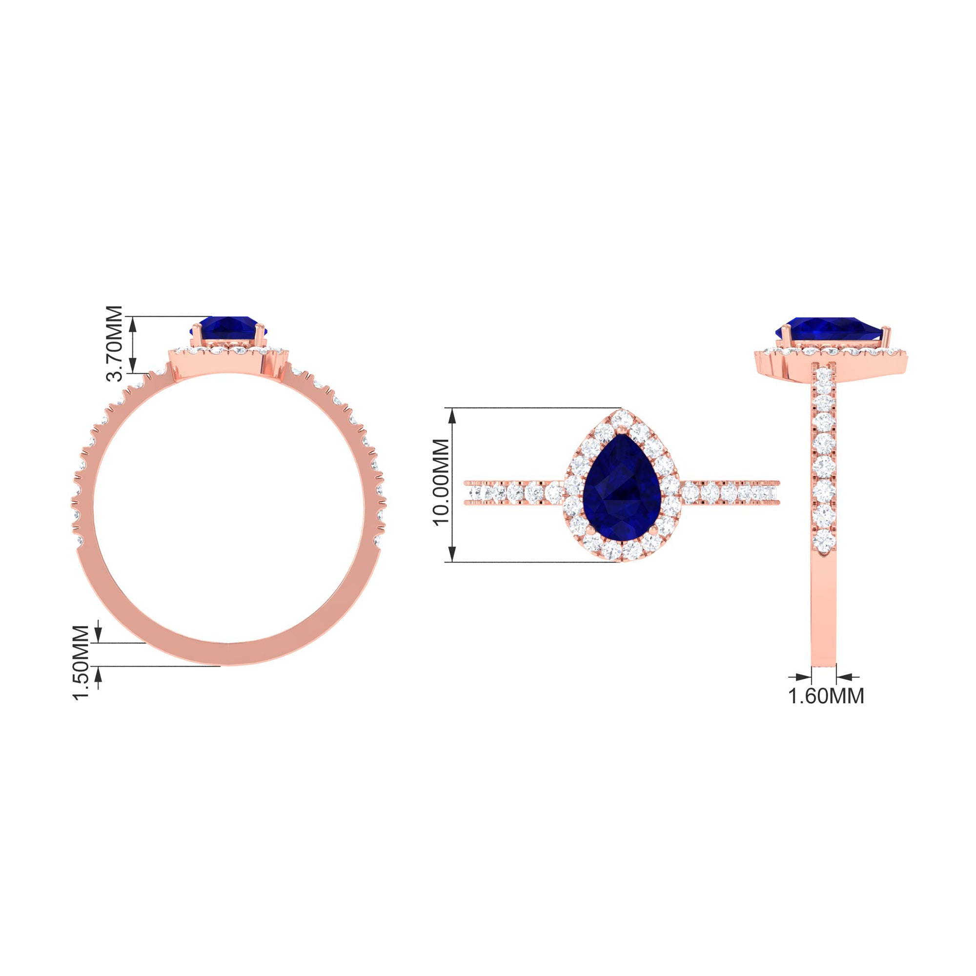 Natural Blue Sapphire and Diamond Teardrop Halo Engagement Ring