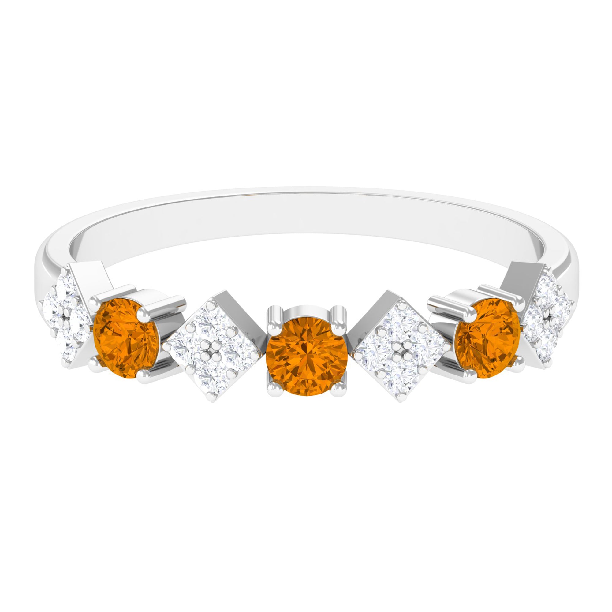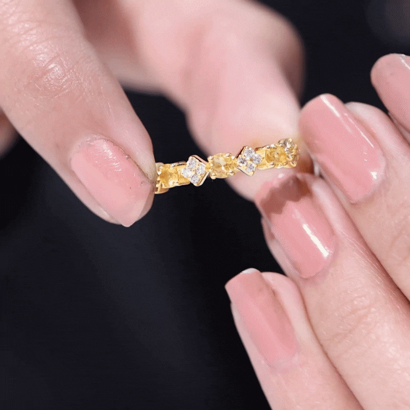 Natural Citrine and Diamond Half Eternity Band Ring in Gold