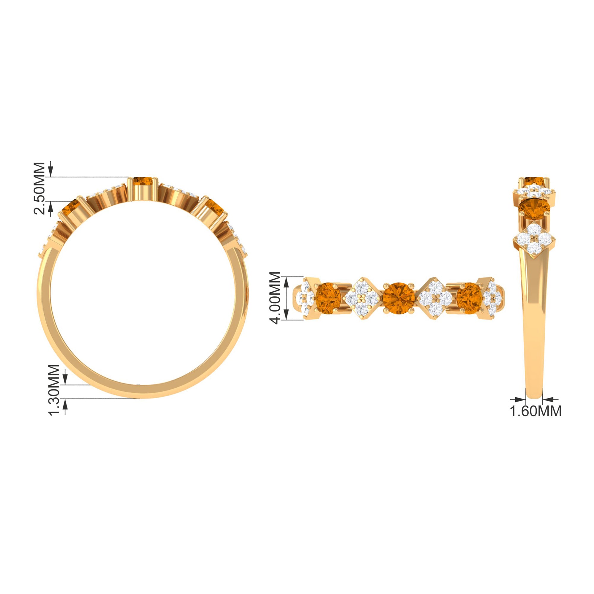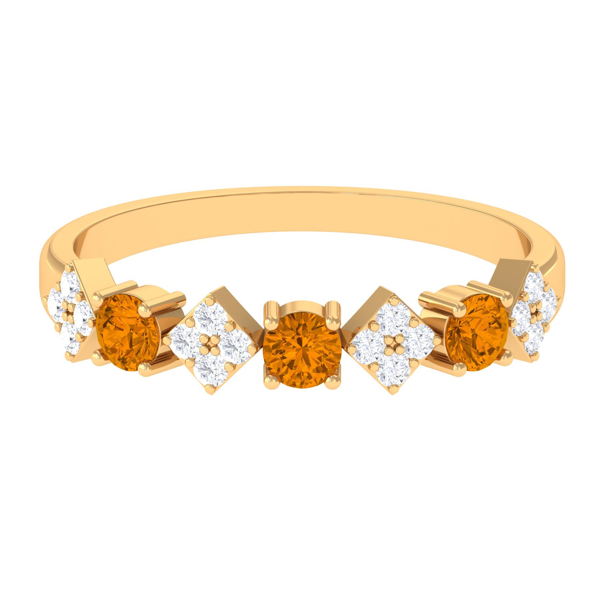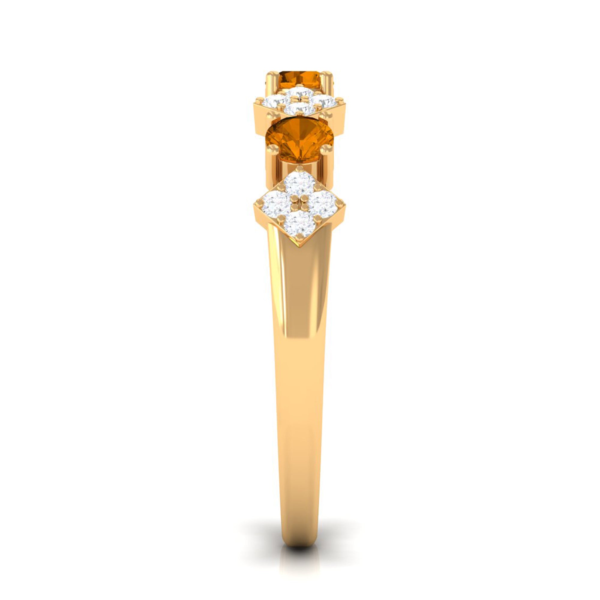 Ladies, elevate your jewelry collection with this half eternity ring. The Round Shape citrine and Round Shape Diamond stones are set in a prong setting, adding the perfect touch of sparkle to your look. Crafted in gold, this ring exudes sophistication and charm. Dont miss out on the opportunity to own this timeless piece and make a statement with every wear.