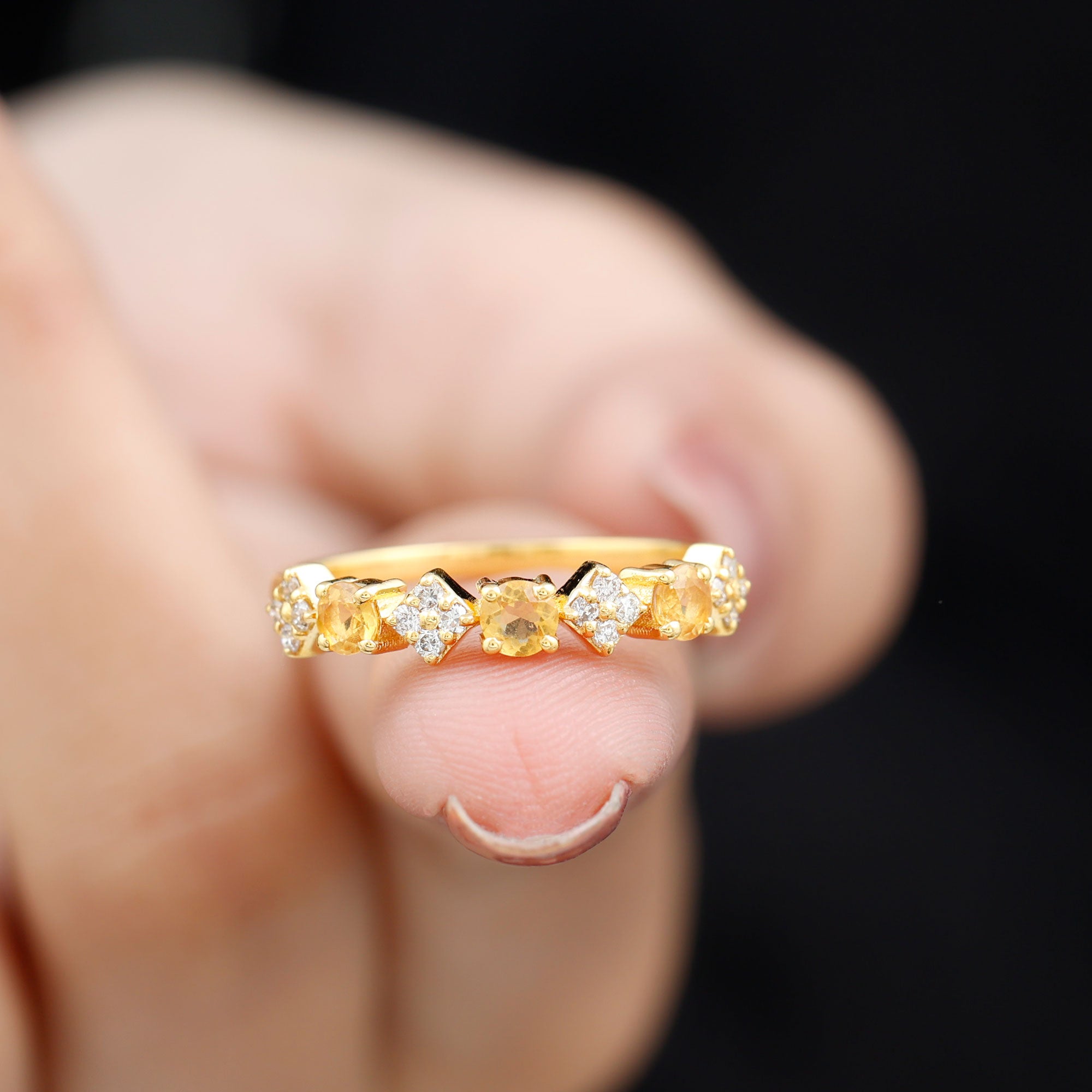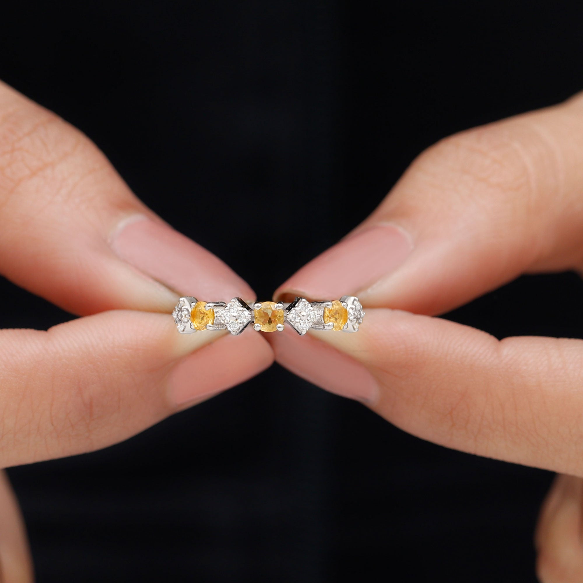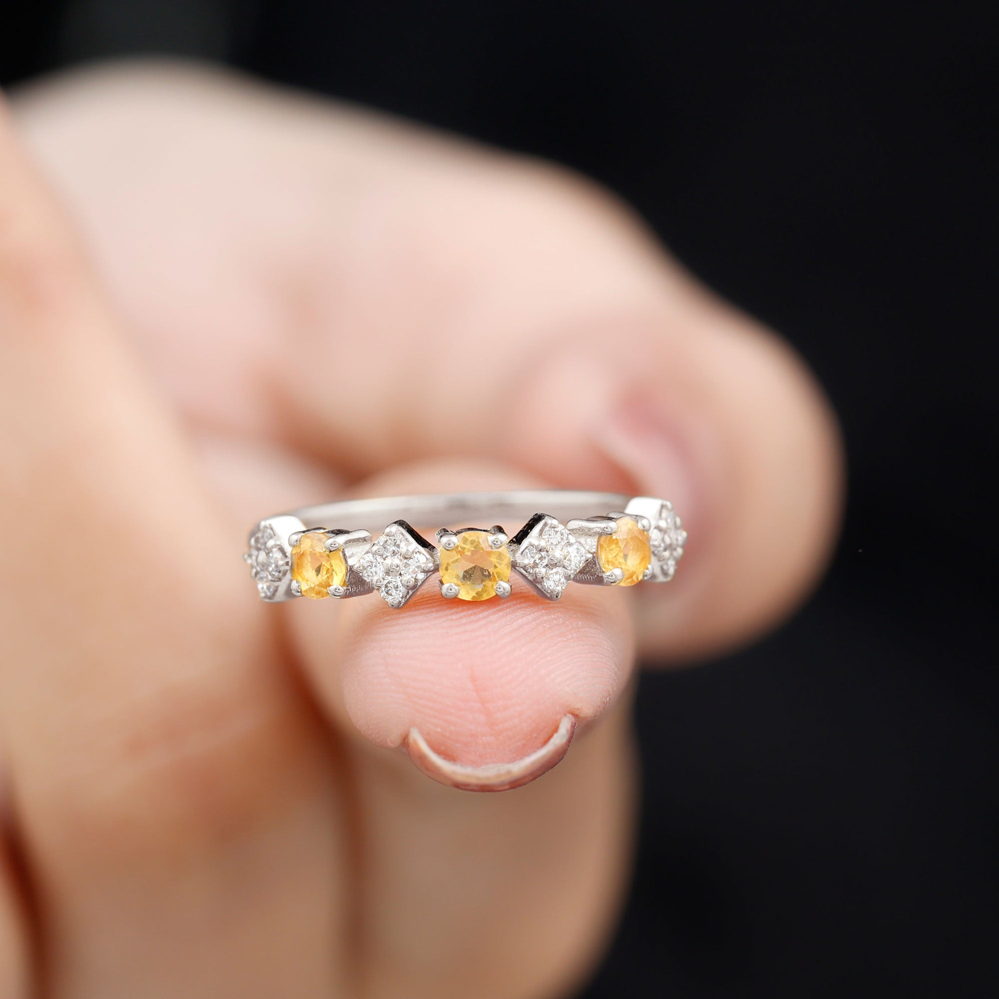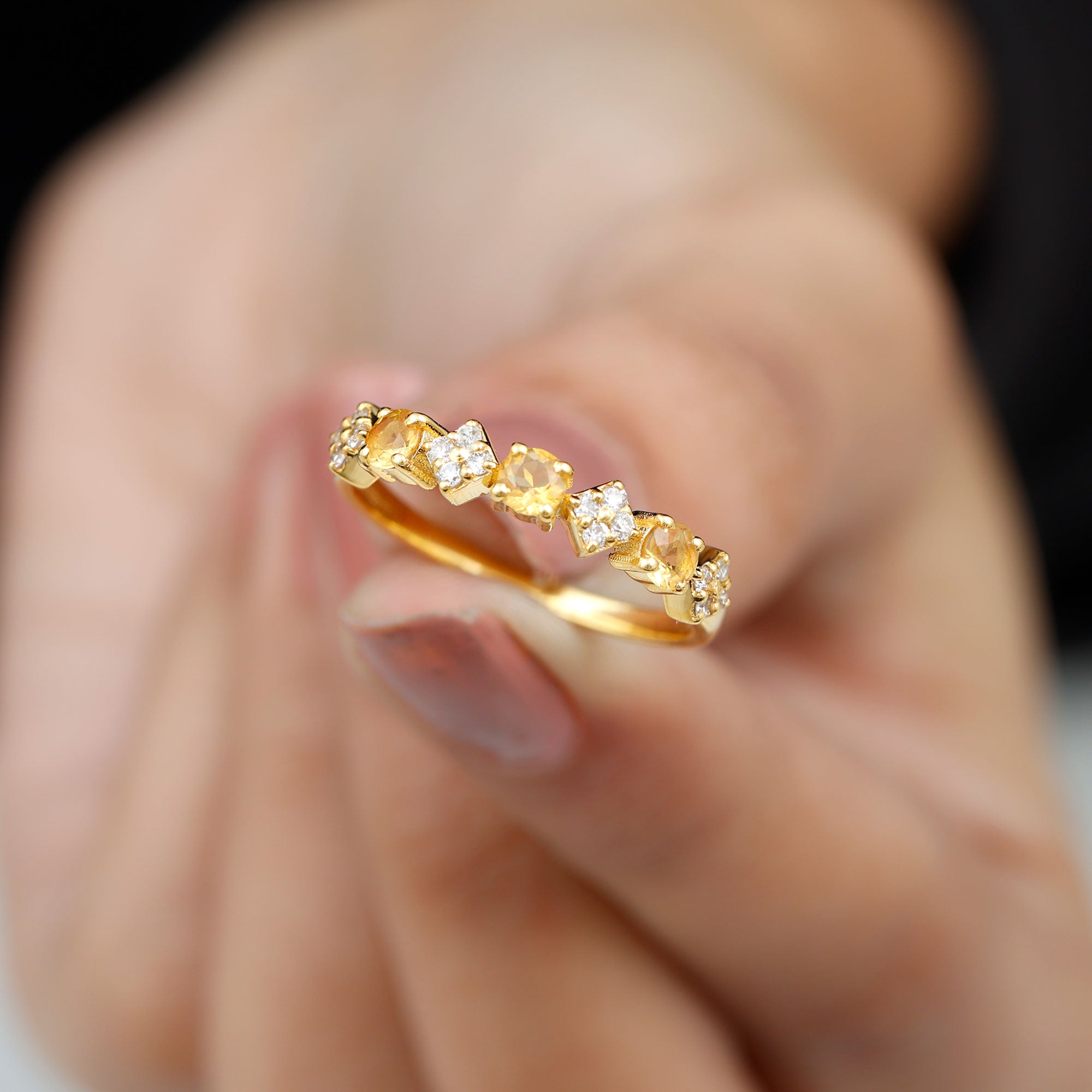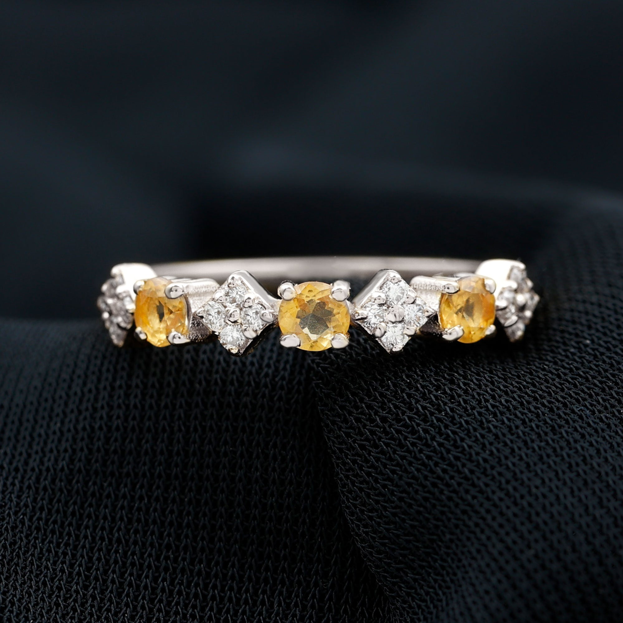 Natural Citrine and Diamond Half Eternity Band Ring in Gold