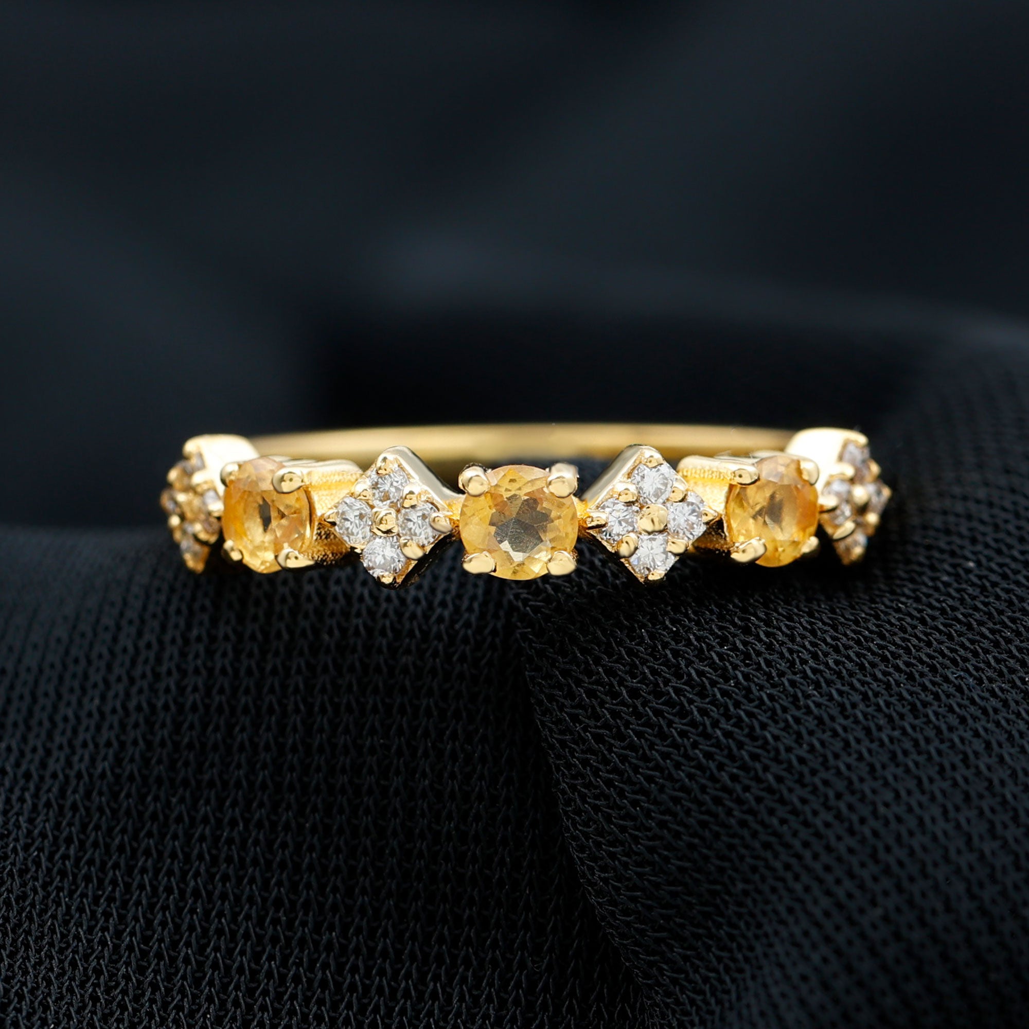 Ladies, elevate your jewelry collection with this half eternity ring. The Round Shape citrine and Round Shape Diamond stones are set in a prong setting, adding the perfect touch of sparkle to your look. Crafted in gold, this ring exudes sophistication and charm. Dont miss out on the opportunity to own this timeless piece and make a statement with every wear.