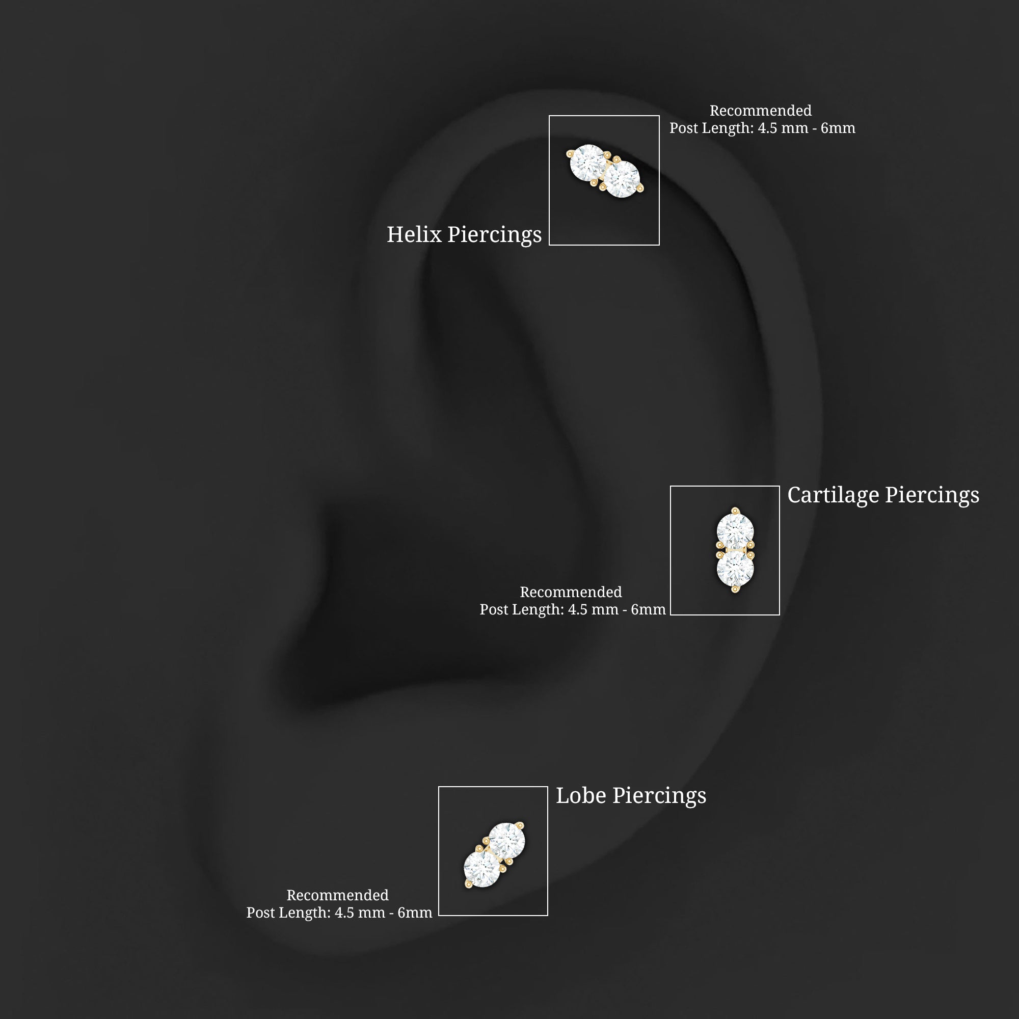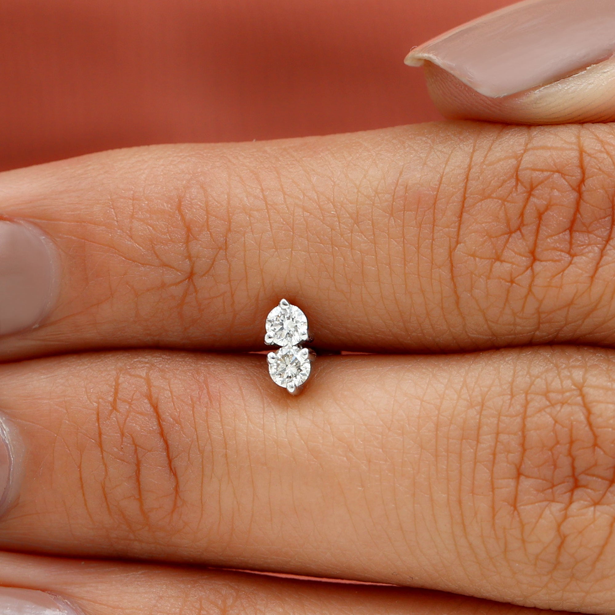Enhance your classic ear stack with a captivating Minimalist Diamond Earring. It showcases two round brilliant cut diamonds set in prong setting, ensuring maximum brilliance and security. This Two Stone Earring is perfect for upgrading your basic everyday or evening attire. Made with hallmarked metal, it promises durability for your collection. You can adorn this Tiny Diamond Earring on your helix, cartilage, conch, tragus, or upper lobe piercing. The flat back closure ensures it stays securely in place. Surprise your special someone with this stunning Diamond Tragus Stud on their birthday. It will undoubtedly bring a lot of sparkle and joy to their celebration. Whether worn solo as a statement piece or paired with other earrings for a curated ear look, it seamlessly fits both minimalistic and bold styles. A tribute to the elegance of minimalist jewelry, accentuated by the timeless sparkle of diamonds.