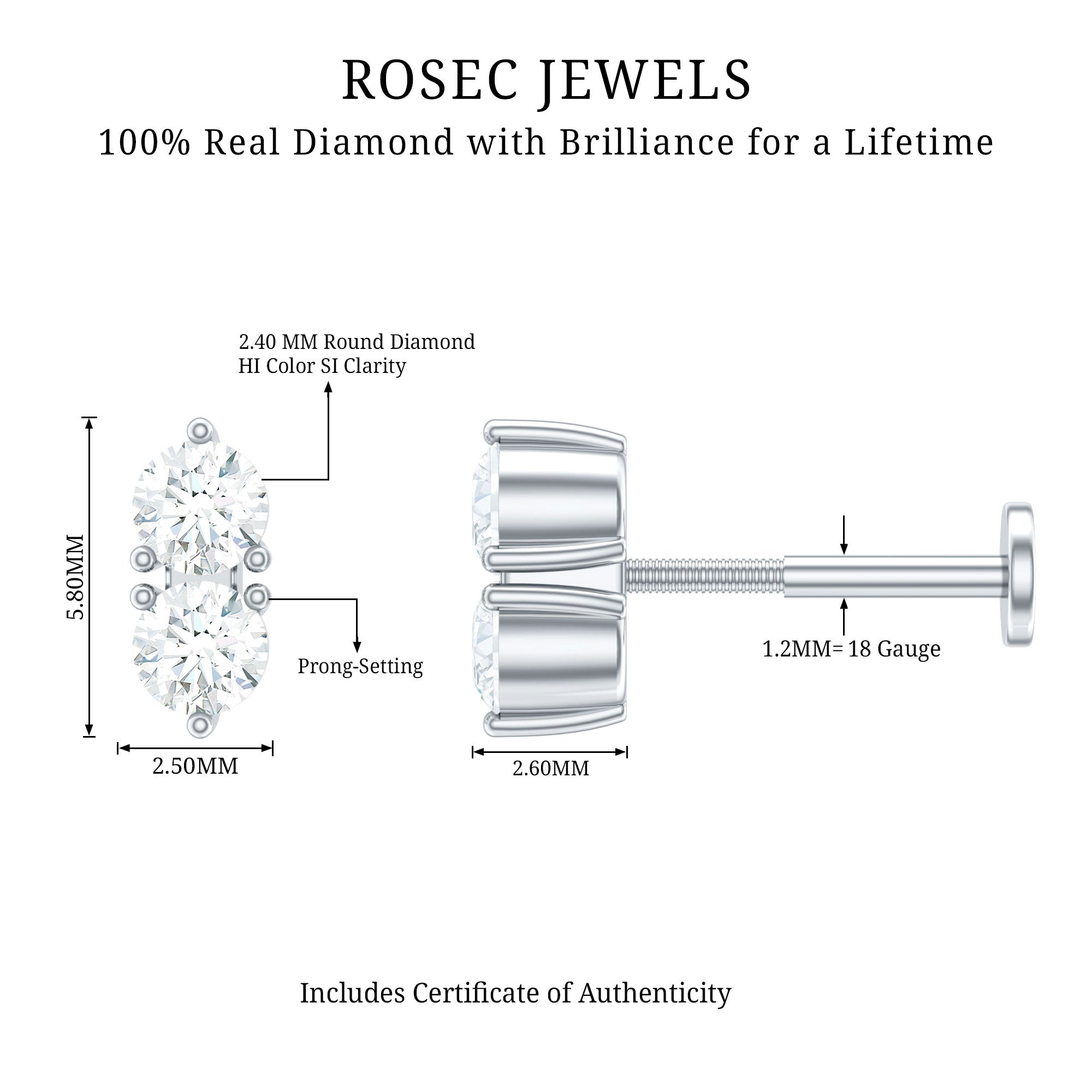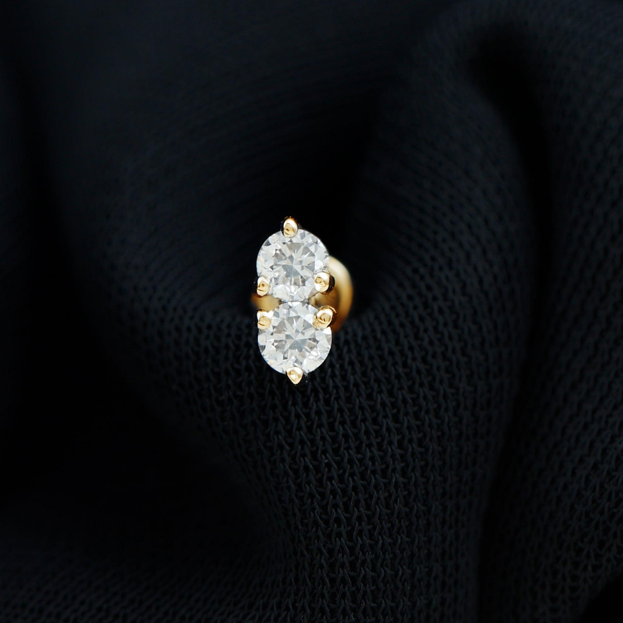 Natural Diamond 2 Stone Earring for Tragus Piercing