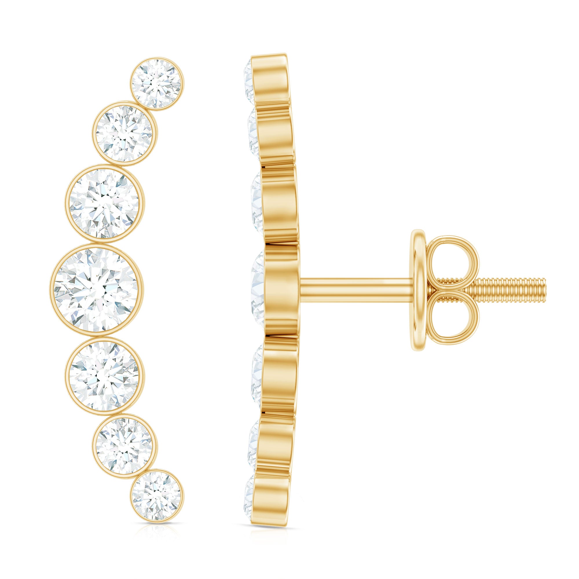 Shimmer in every sway, these Diamond Climber Earrings exude timeless elegance. Crafted with exquisite attention to detail, each earring features Round Shape Diamond gemstones, meticulously set to enhance sparkle and brilliance. Their sleek design elevates any ensemble with sophistication and charm. The Screw Back Closure ensures a secure fit, promising comfort and peace of mind for the wearer. Embrace luxury and style with these captivating Diamond Earrings, perfect for any occasion.