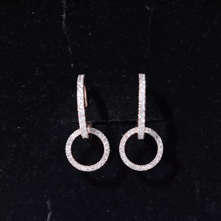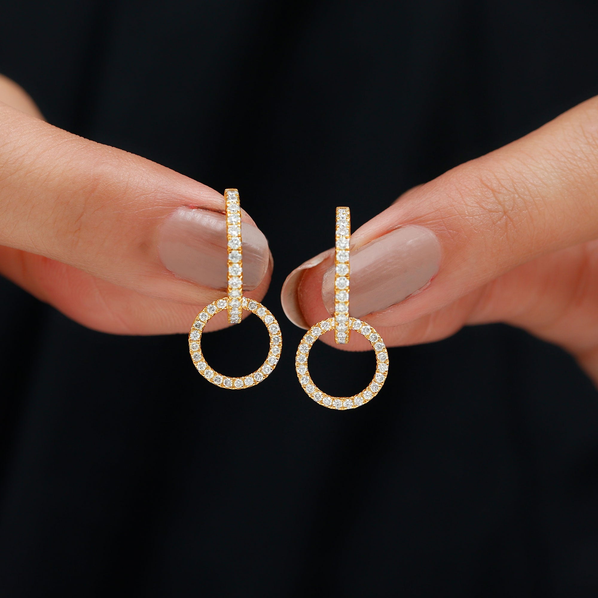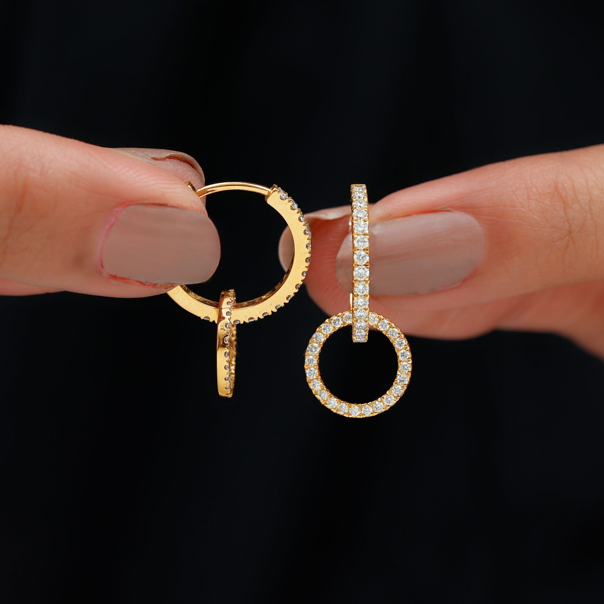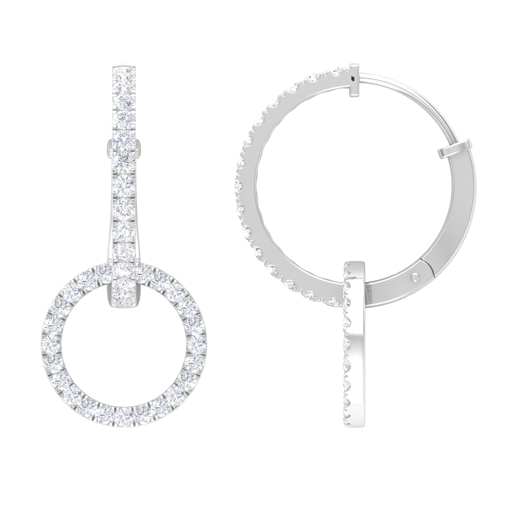 These gorgeous Hoop Drop Earrings are a must have for you. These are embellished with round shape Diamond gemstones set in Prong Setting studded on the Entire Eternity Hoop Earrings. These Interlock Drop Earrings will go with everything you wear and make you look out from the crowd.