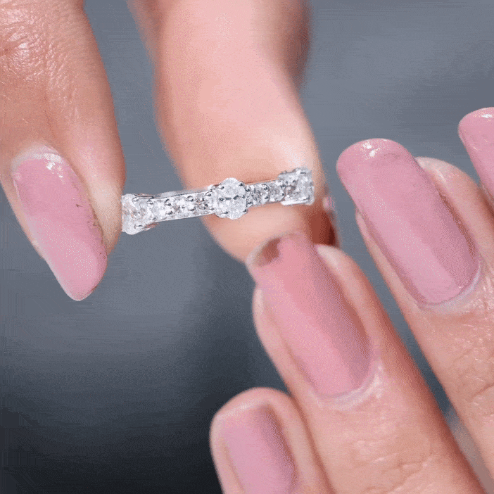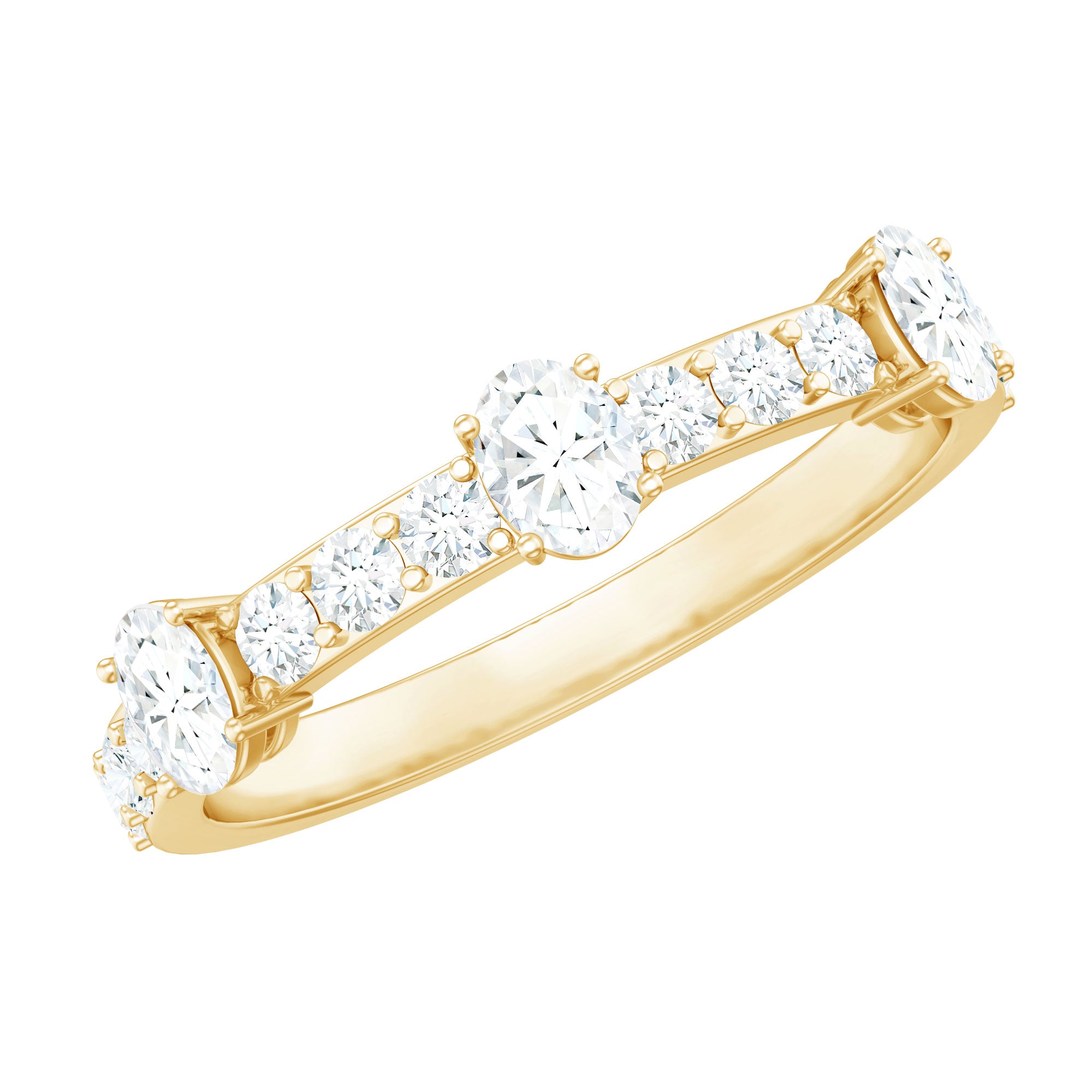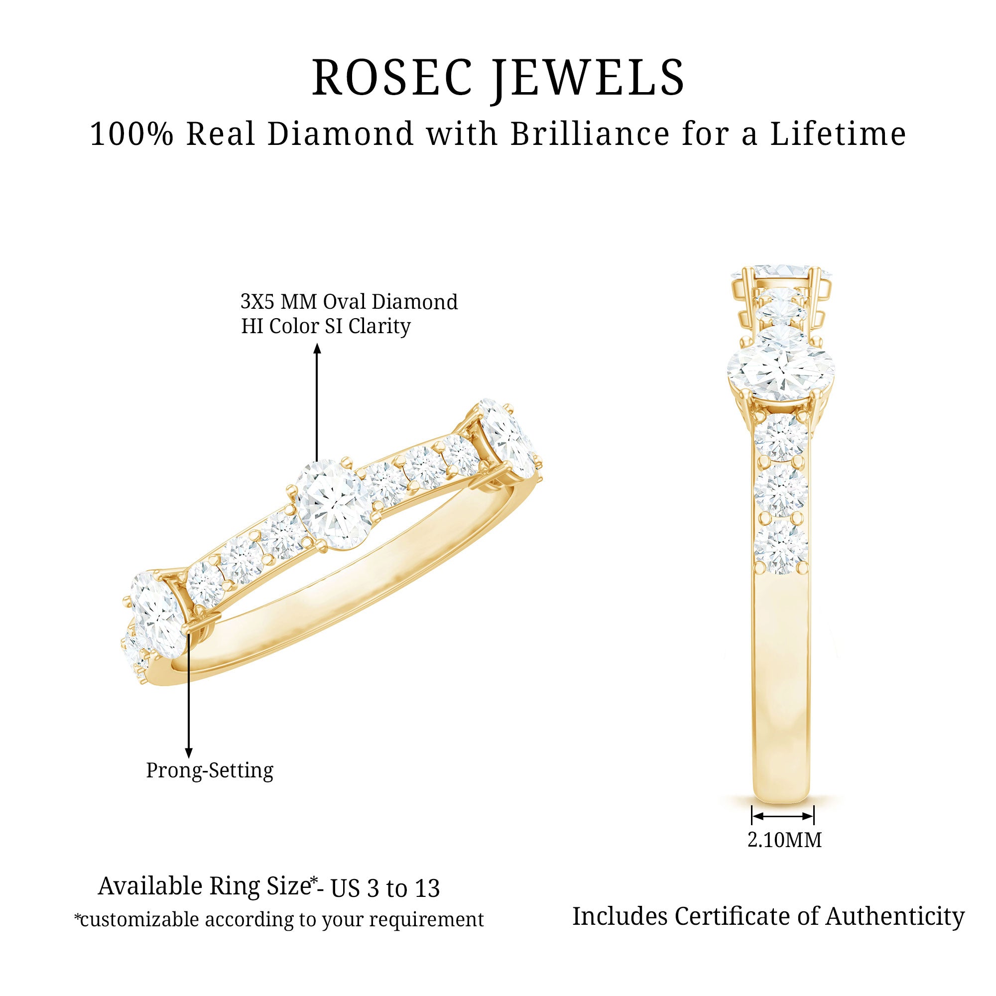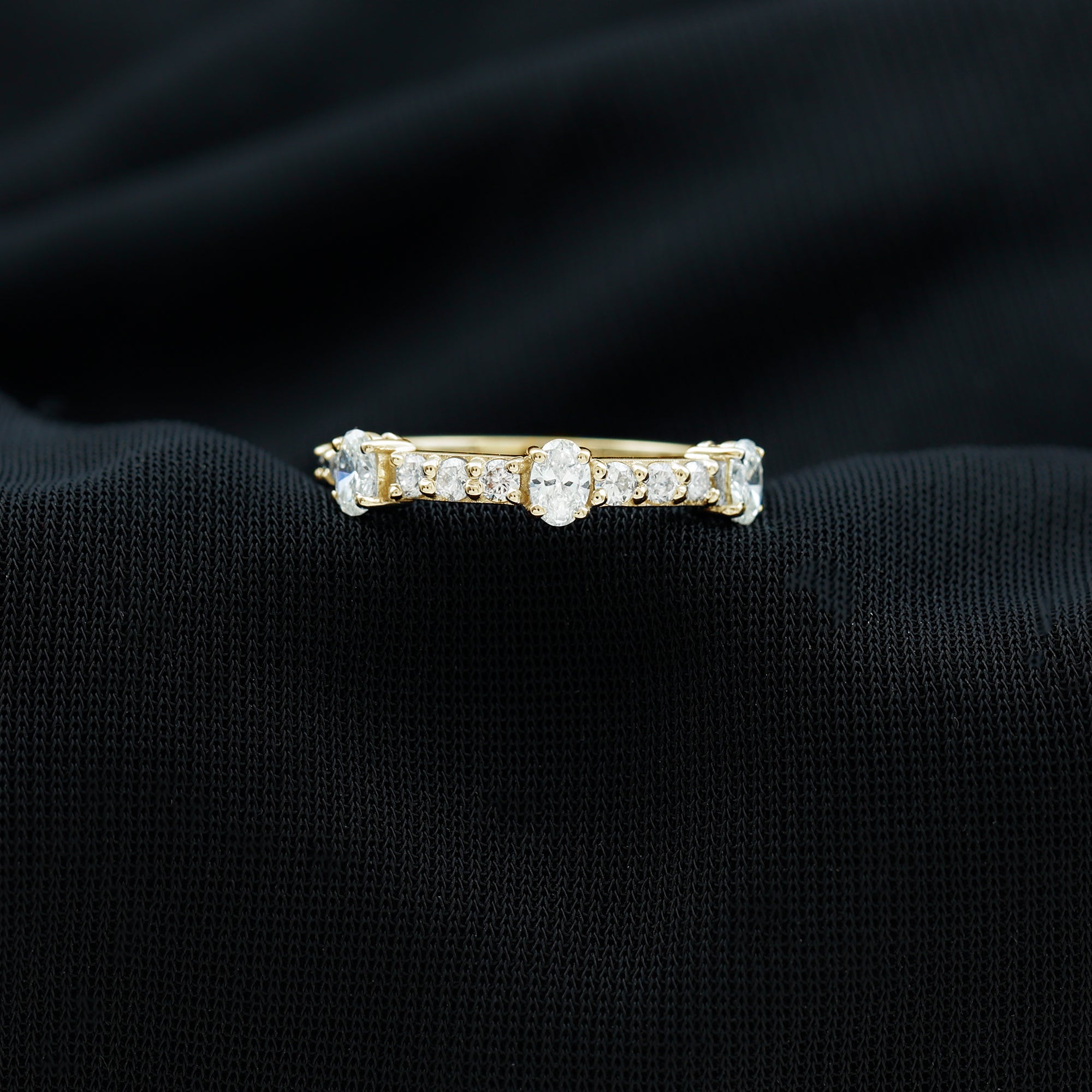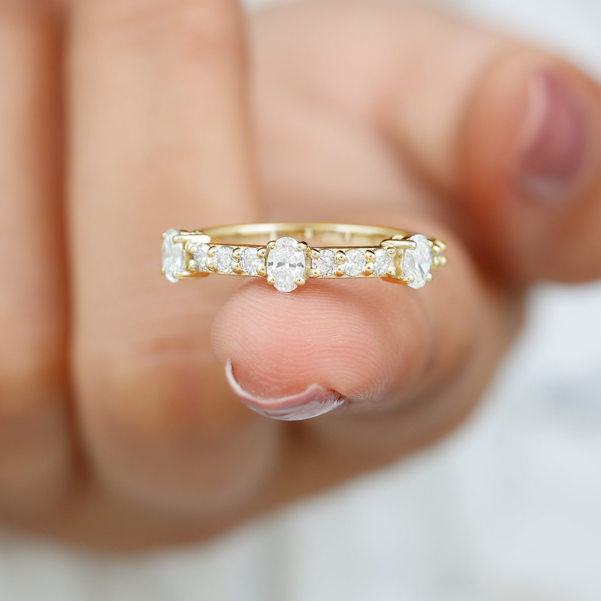 Redefining romance, this Diamond Half Eternity Ring is an extraordinary symbol of enduring love for your cherished one. It showcases Oval and Round Shape Diamond gems, securely cradled in a Prong Setting, arranged in an alternating fashion to create a captivating contrast halfway across the band. Furthermore, this Real Diamond Eternity Ring masterfully balances between understated elegance and striking beauty, making it a versatile addition that complements a wide range of styles.